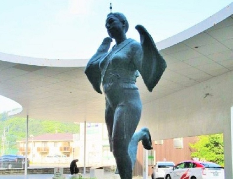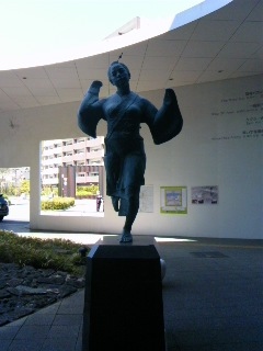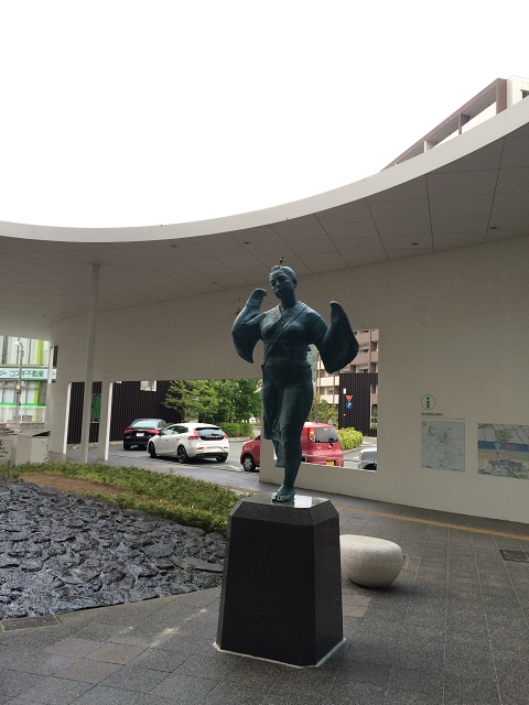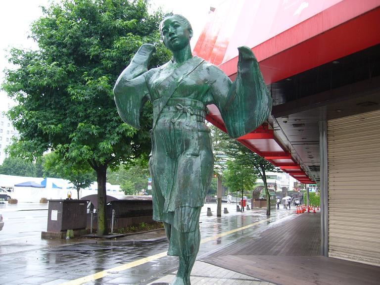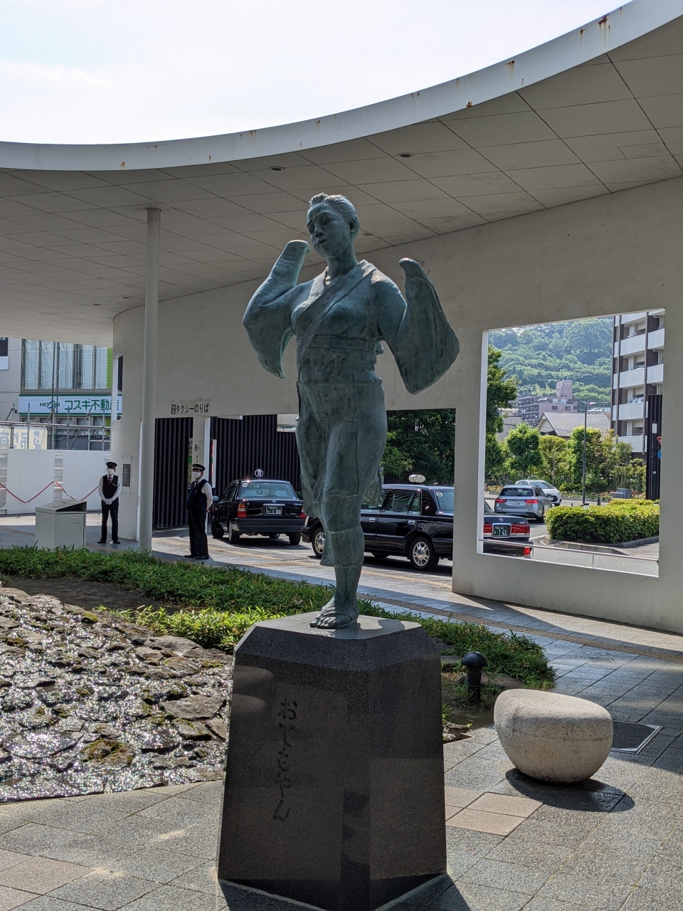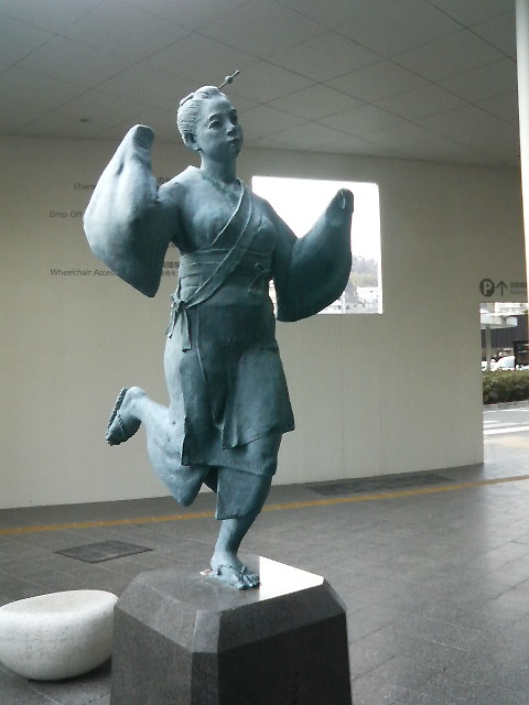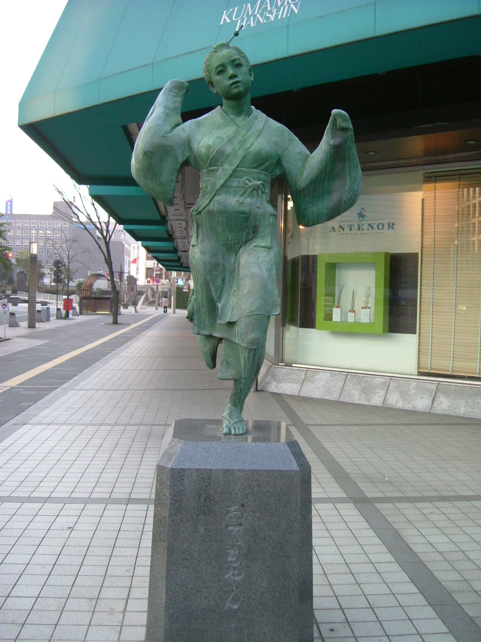 JR熊本駅新幹線口の玄関前に建つおてもやん像