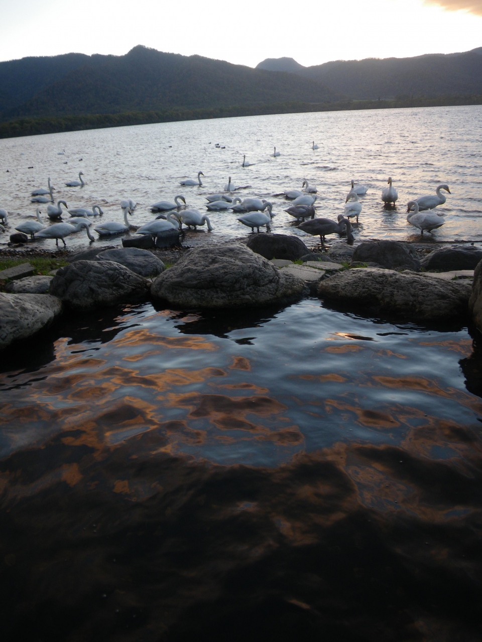 屈斜路湖とほとんど繋がっているくらいのところにある無料の露天風呂です。温泉の近くに白鳥や鴨が集まっていて、白鳥の鳴き声をB... 続きを読むGMに入ることができます。温泉は石油臭のする本物の温泉です。以前は行った時はとても熱かったのですが、今回は適温でした。夕暮れ時で夕陽が湖面に反射して輝いているようでした。 閉じる