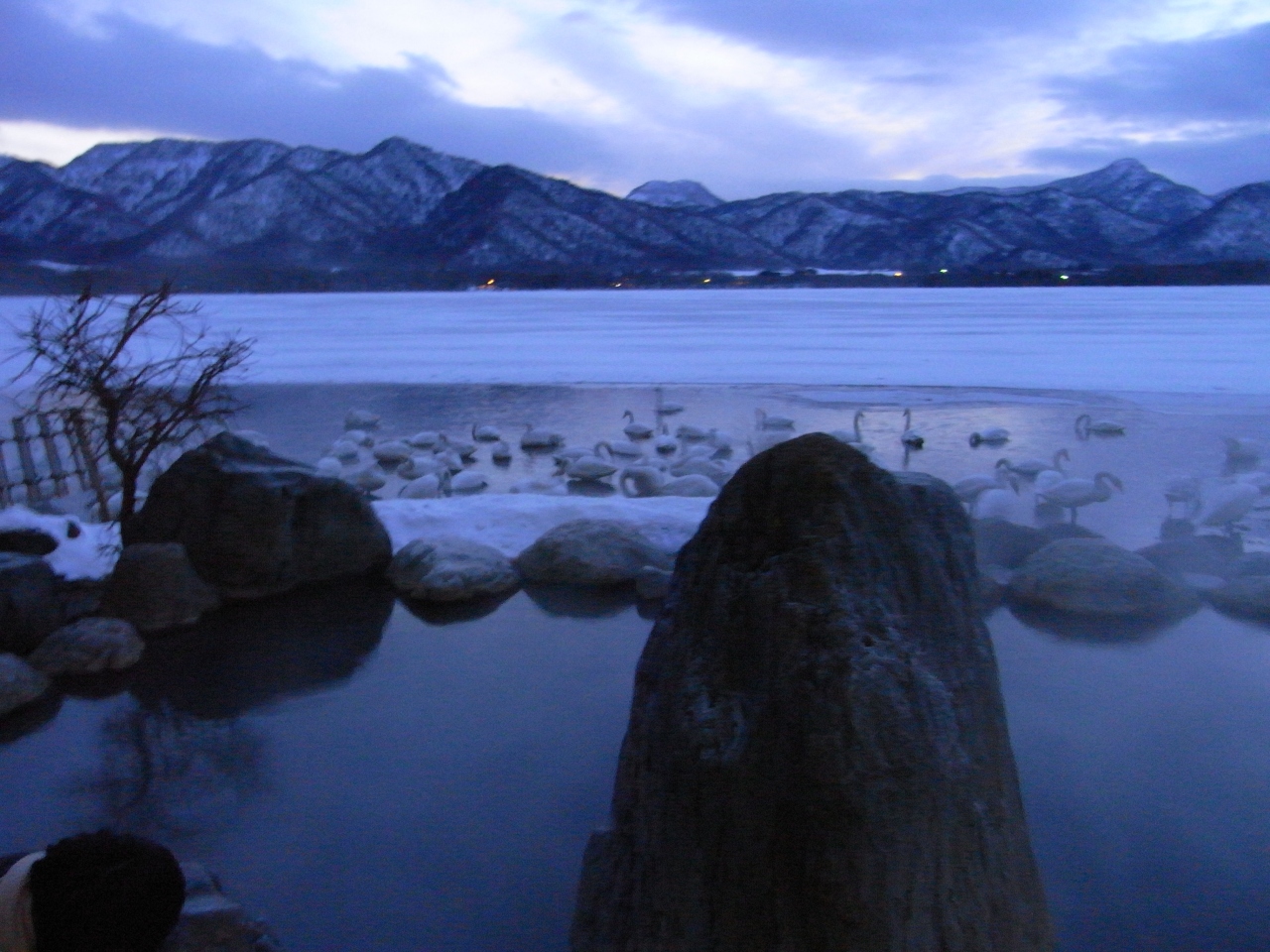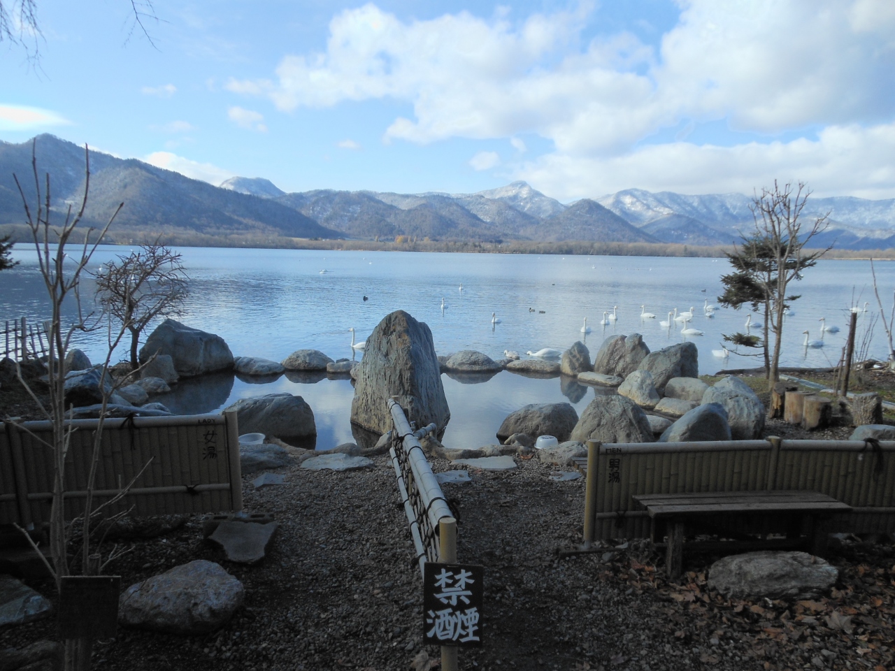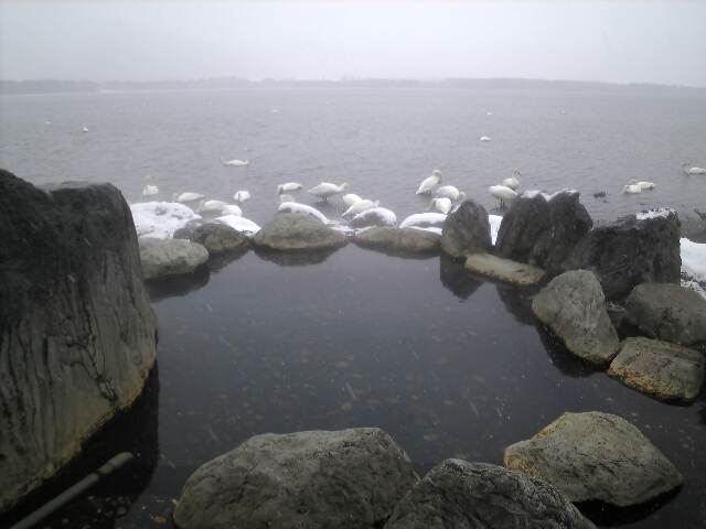 白鳥を見ながら入れる絶景露天風呂です。