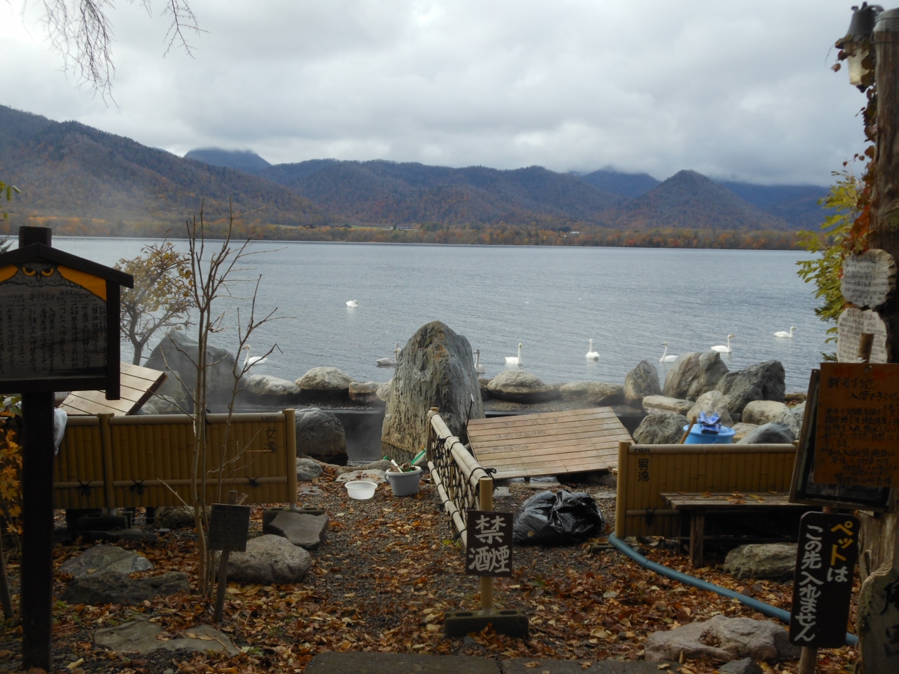 屈斜路湖畔にある露天風呂コタン温泉。川湯とは違って肌に優しい泉質の温泉です。混浴ですが、一応岩らしきもので男女が仕切られて... 続きを読むおり、周囲もそれとなく囲いがあります。そして目の前は屈斜路湖。夏場で水着を着用していればそのまま湖で泳ぐこともできます。また冬場になると、屈斜路湖は凍ってしまいますが、コタン温泉周辺は地熱があるため凍りません。そのため餌を求めて鶴が集まって来るそうです。