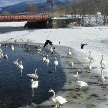 大沼湖に隣接する小沼湖は、深い所でも水深5mほどの陥没湖。所要25分ほどの散策路「夕日の道」があり、植物や野鳥などの自然観察におすすめです。夏場は散策ガイドツアーやカヌーツアーで巡ることができ、冬はスノーシューガイドツアーが開催されています。大沼湖と接する場所、通称「白鳥台セバット」には冬になるとオオハクチョウなどの水鳥が集まります。