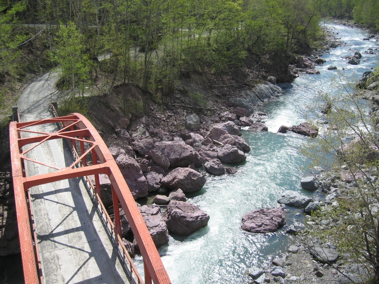 なお、赤岩青巌峡は、ロッククライミングで有名な場所と聞いていたが、ロッククライミングをしているのが道路脇にせせり出している、それほど高所ではない岩のところだったので、拍子抜けした。