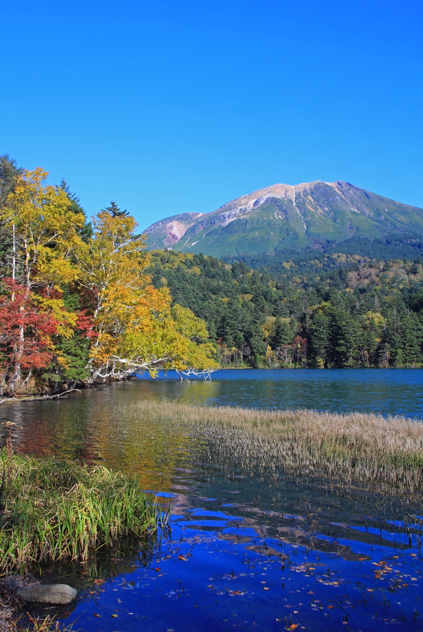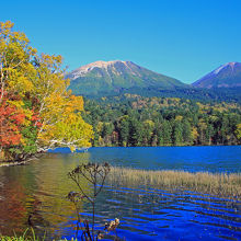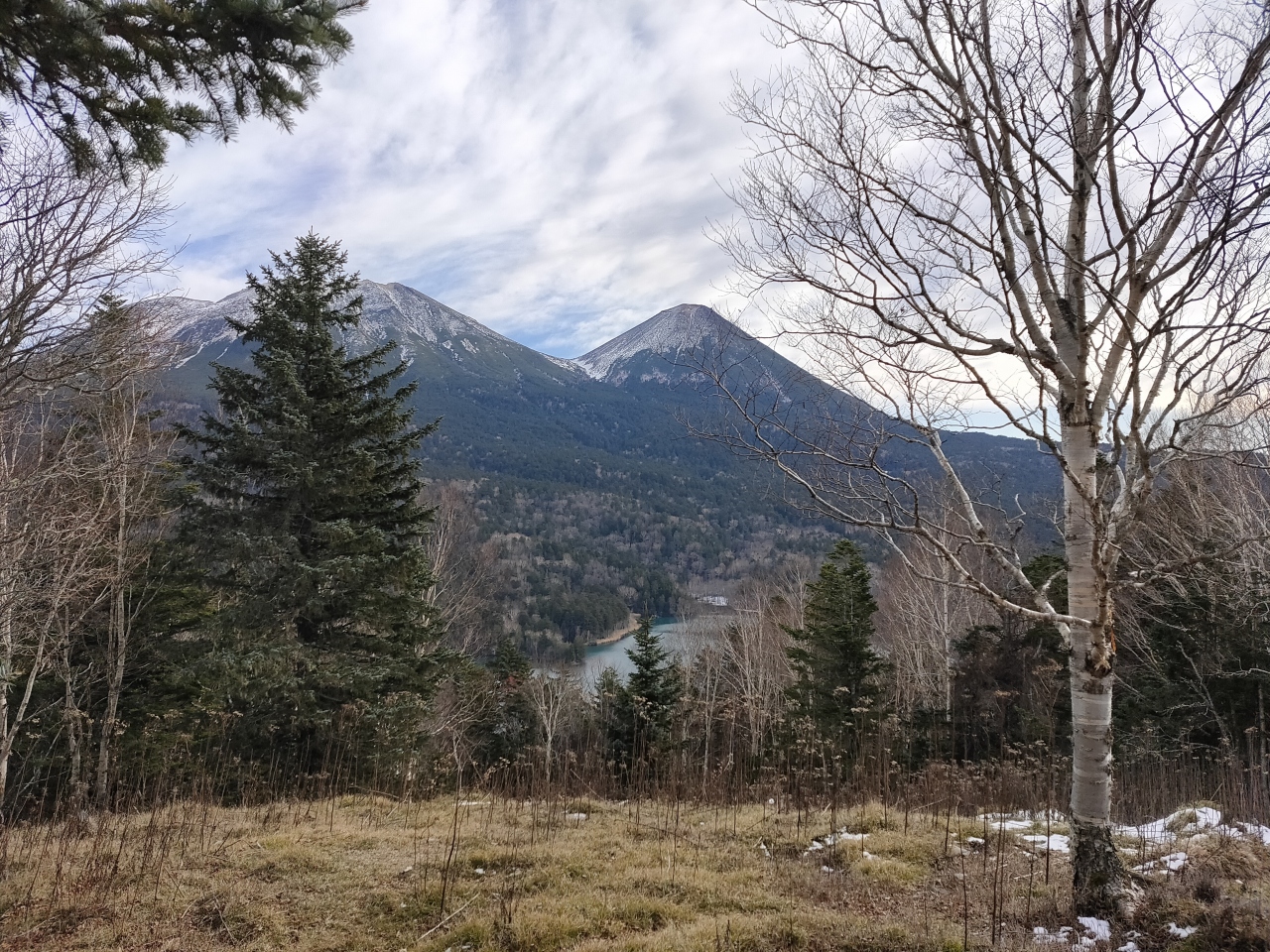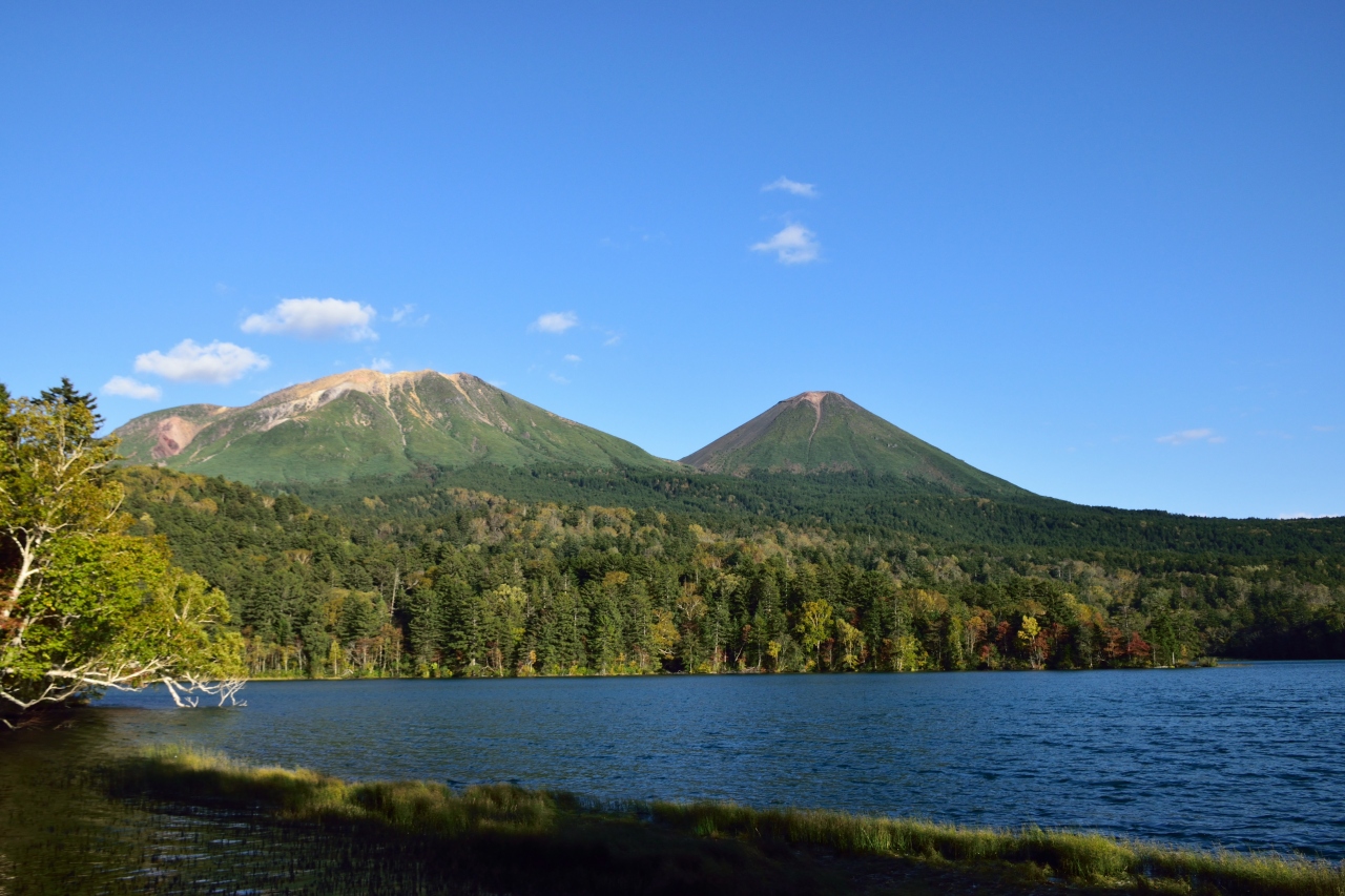 「湖畔展望台」はほぼ湖面レベルですので、朝方の風の条件が良いときなら、雌阿寒岳と阿寒富士の水面への映り込みを見ることができるのですが…今回は十勝川温泉から向かったので到着が11時半になってしまい、そんな光景にはついに会えずじまい。そして10/1現在紅葉はあと少し、という感じでもありました。来年以降のロケハンということで納得することにします。