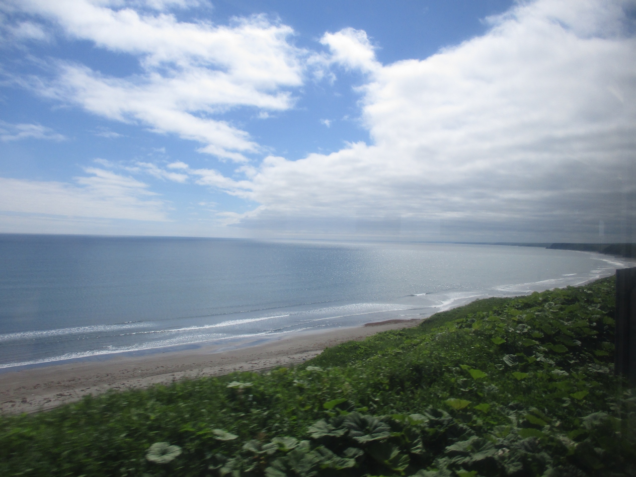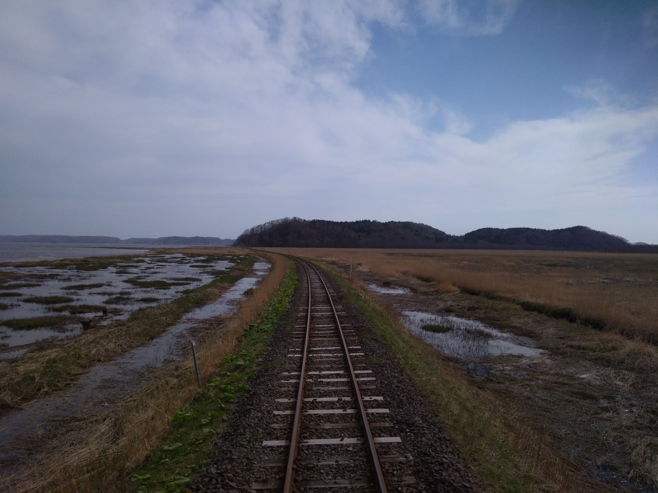JR根室本線はたった一両で、前方がよく見え、線路が海・湖のすぐそばを通る