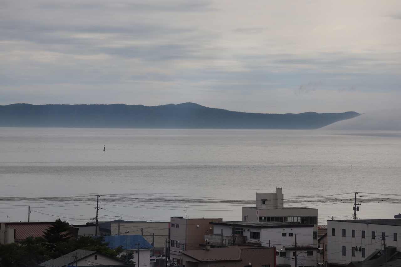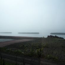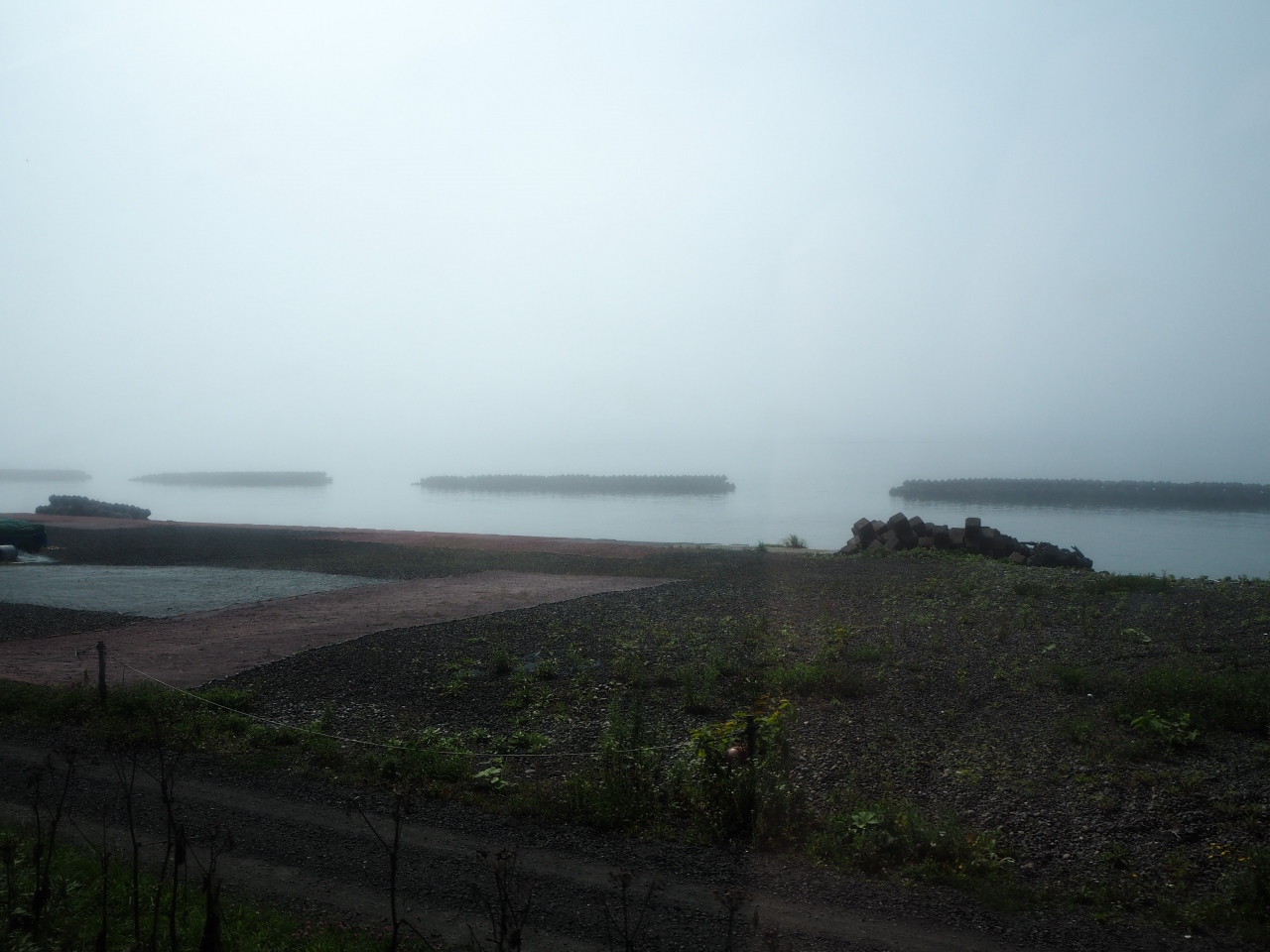 霧の対岸の半島がみえる「コンキリエ」からの厚岸湾の眺めは幻想的でした