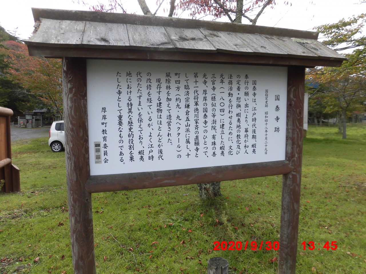 国泰寺の前には無料の駐車スペースがあって、車でも訪れやすいですが、便数は少ないものの、厚岸―霧多布温泉までのバス停もお寺のすぐ前にあります(厚岸駅から¥240円)。