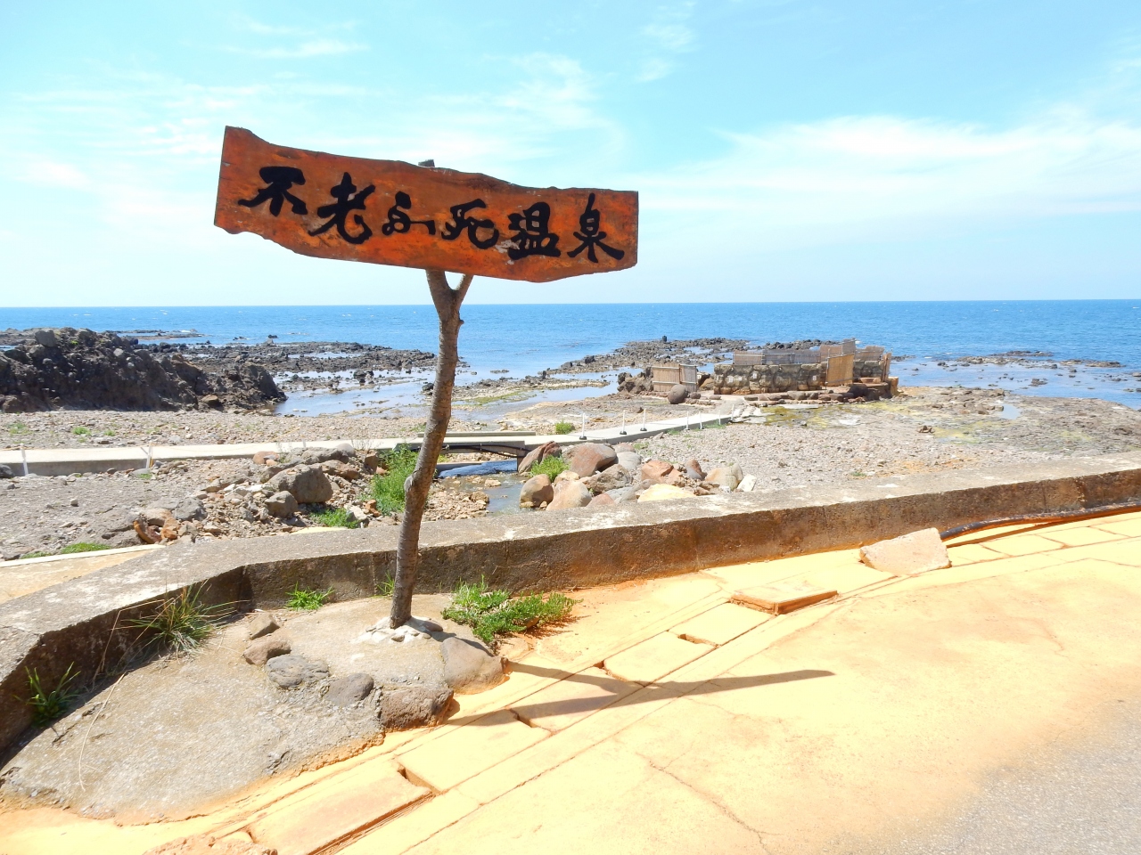 不老ふ死温泉近くの海