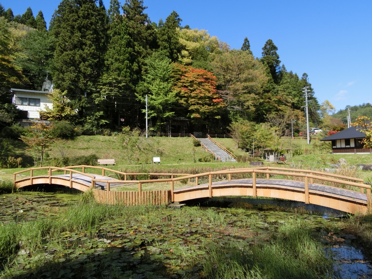 奥州街道独り歩きのルート上に、この北上川源流いわてまち川の駅があります。2016年10月11日に行きました。この頃は未だ紅... 続きを読む葉が早すぎでしたが、それでもうっすらと色が付いていました。川の駅と云うから、最初は道の駅と同じ様に、特産品を売っている店があるのかと思ったが、全くなく、大きな休憩所に北上川に関する資料が掲示されているのです。その建物の前が小公園となっていて、ここが北上川の源流でした。が、しかし、本当の北上川の一滴はは道を挟んで御堂観音の掲題です。ここは、そこから流れ落ちる一滴が集まり、ちょろちょろの水流が来ています。でも、源流ですよ。この公園には池が造られて橋が架かり、中々風情があって面白い場所でした。参考までに、ここに来るにはIGRいわて銀河鉄道の御堂駅から歩くか、タクシーの停まっている大きな駅、例えば沼宮内駅とか好摩駅とかに降りてタクシーがいいかもしれません。ここには自販機が1台設置されているだけで他に、周囲も含めてお店は有りませんし、昼食時間帯なら、弁当持参が宜しいでしょう。 閉じる