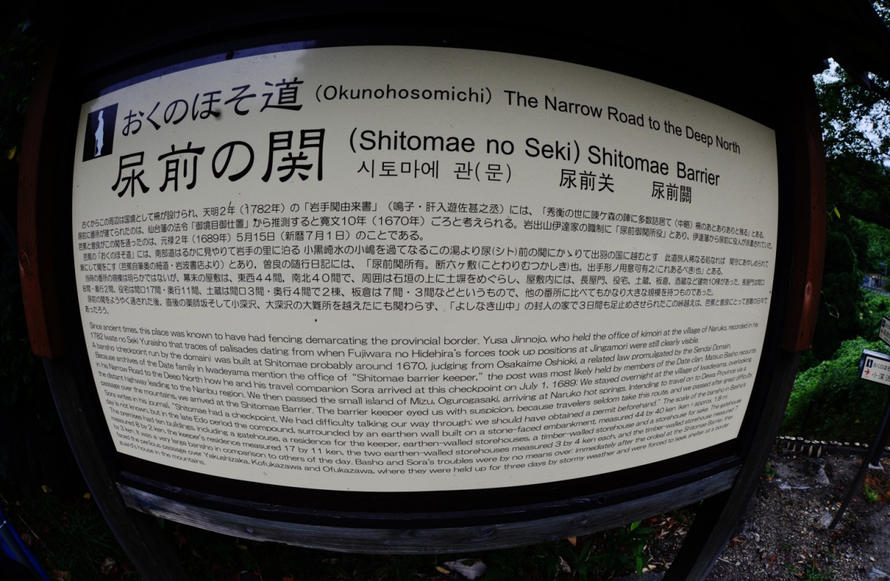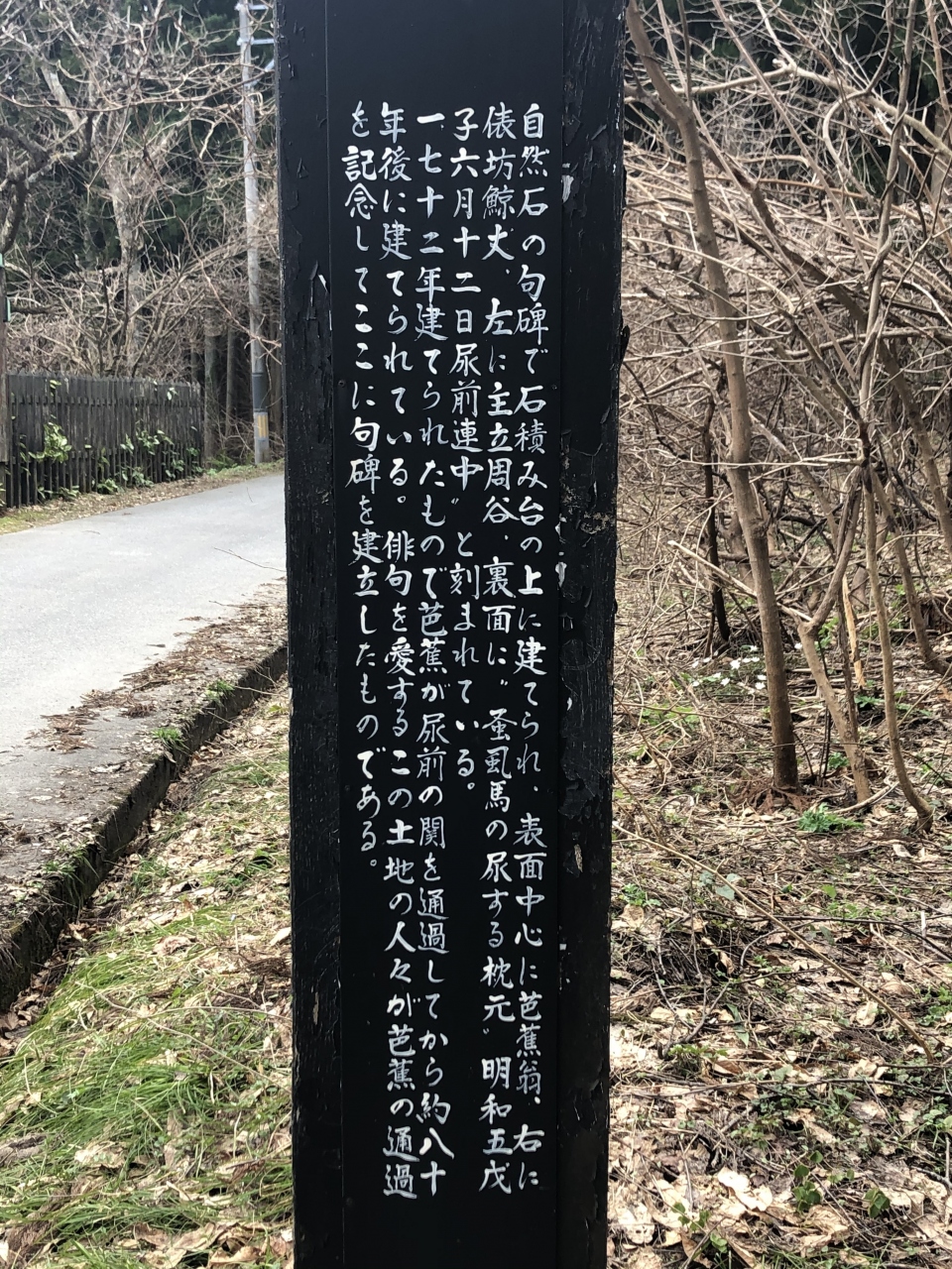 芭蕉と曾良はここを通過する時にスパイ?と疑われたのか、大変苦労して時間を要した、と記している。ここを通過した後宿泊した封人の家で、名高い「蚤虱 馬の尿する 枕もと」を残している。明らかに「尿」と関連付けられている。