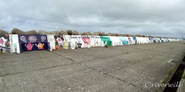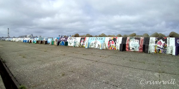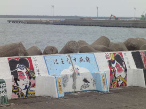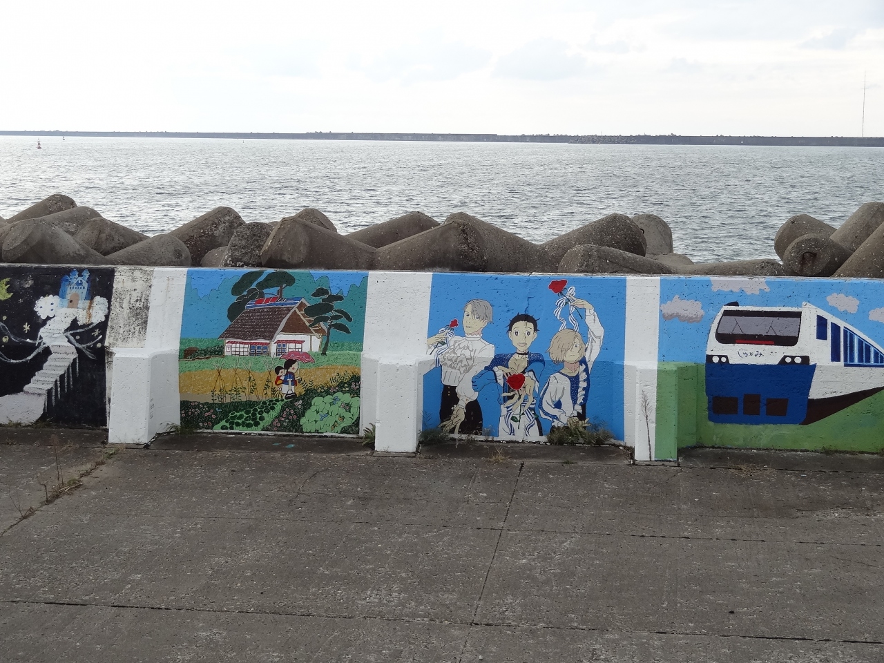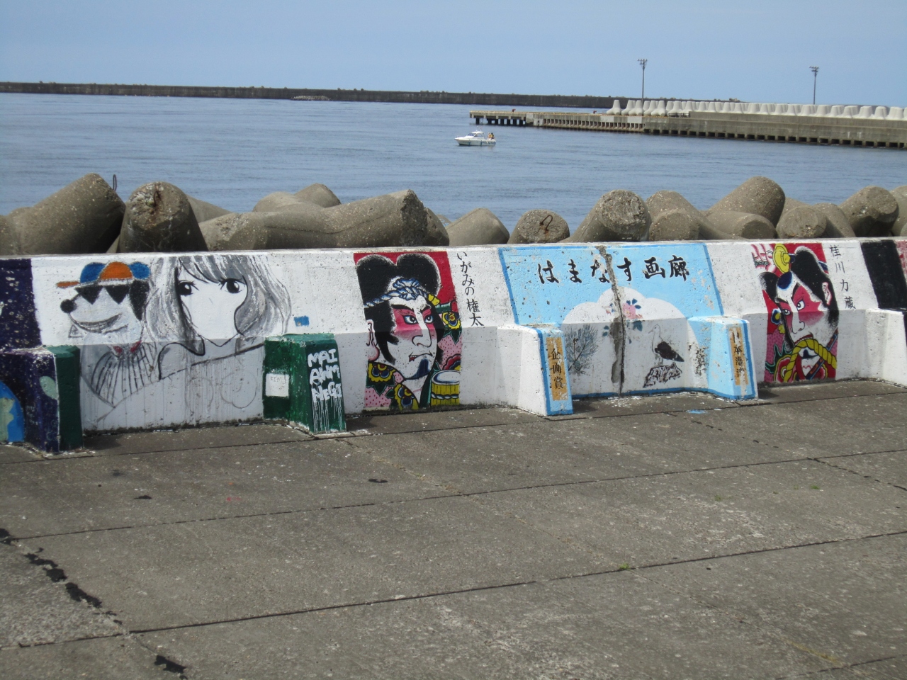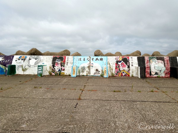 能代市の発電所の奥にある海洋公園の防波堤に作られた「はまなす画廊」
