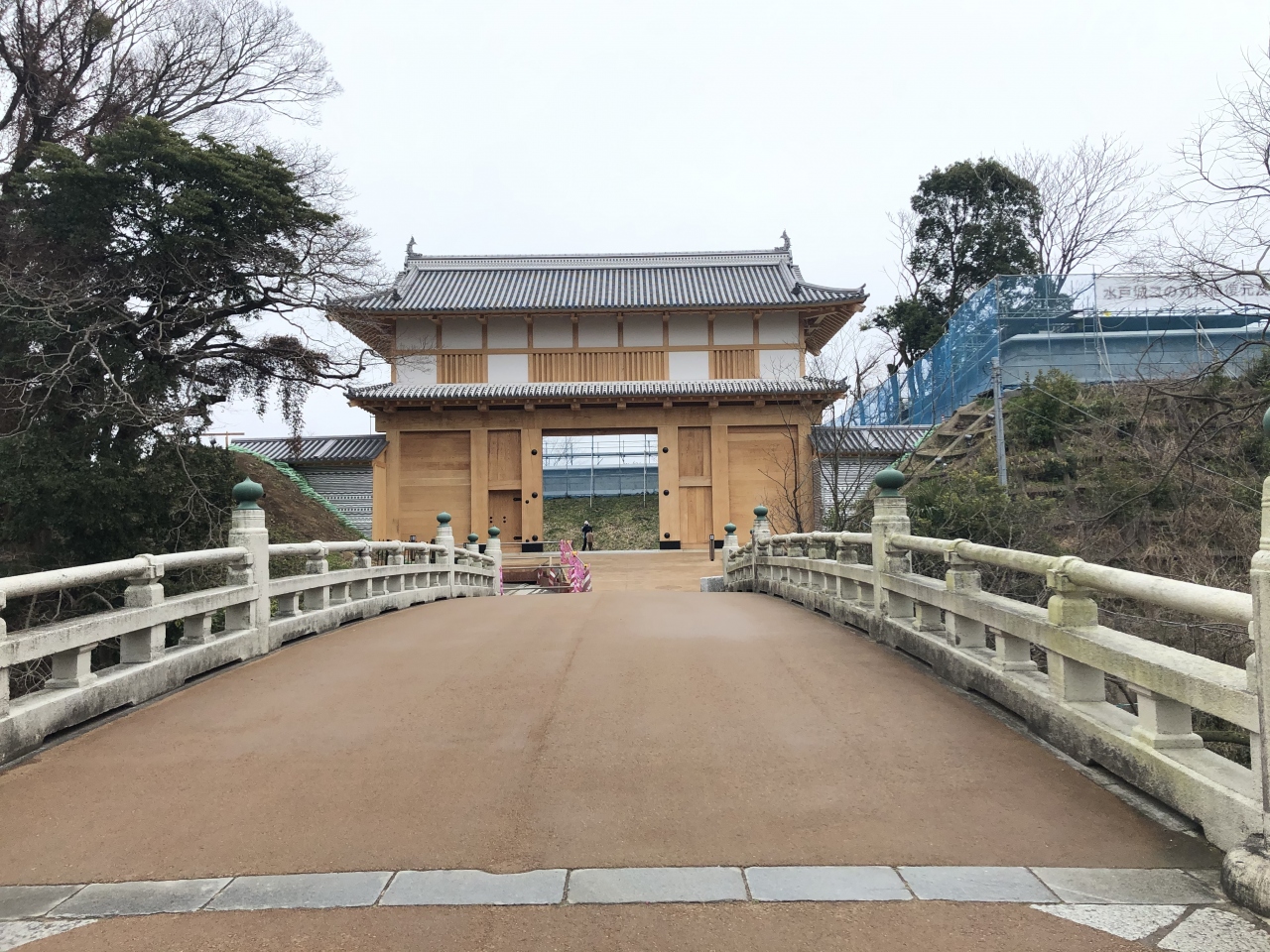 日本100名城の水戸城、現存するのは薬医門のみ、杉山門、大手門が近年再建され二の丸角櫓は工事中