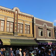 木造建築の表面を洋風建築にした看板建築が並ぶ街並みが映画のセットようです。