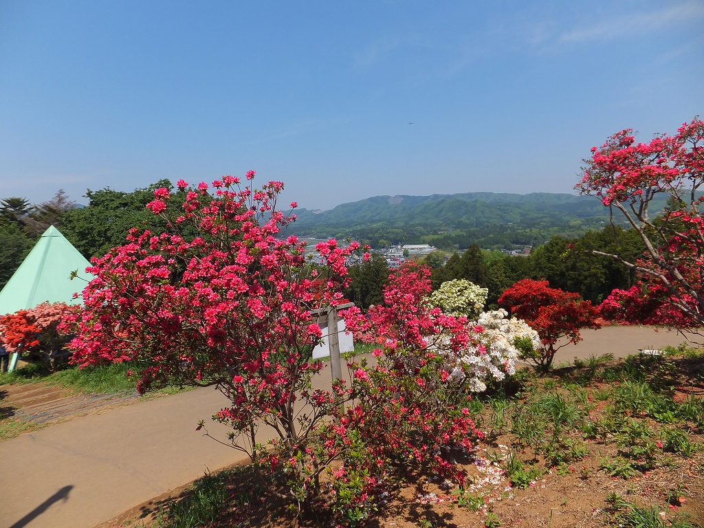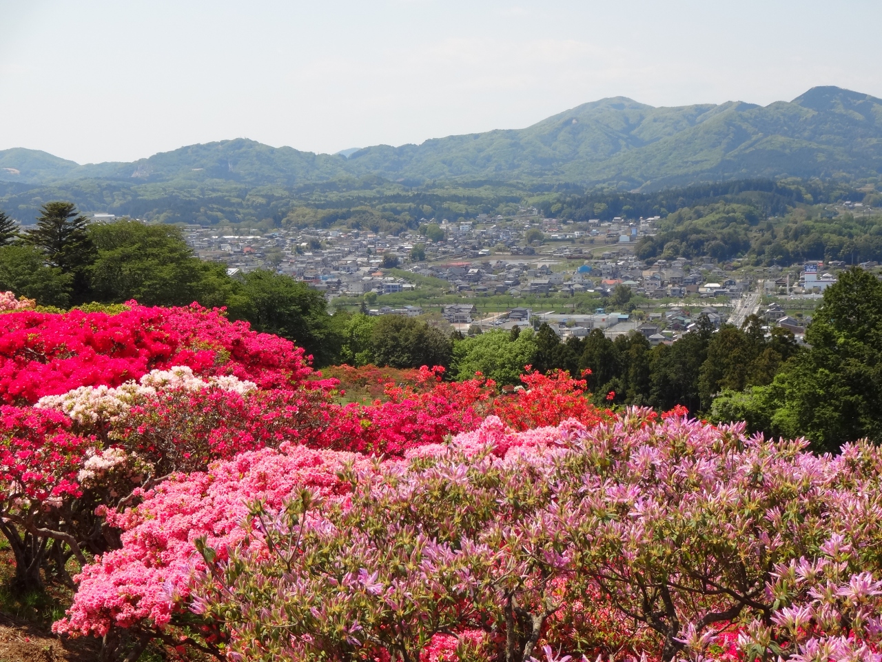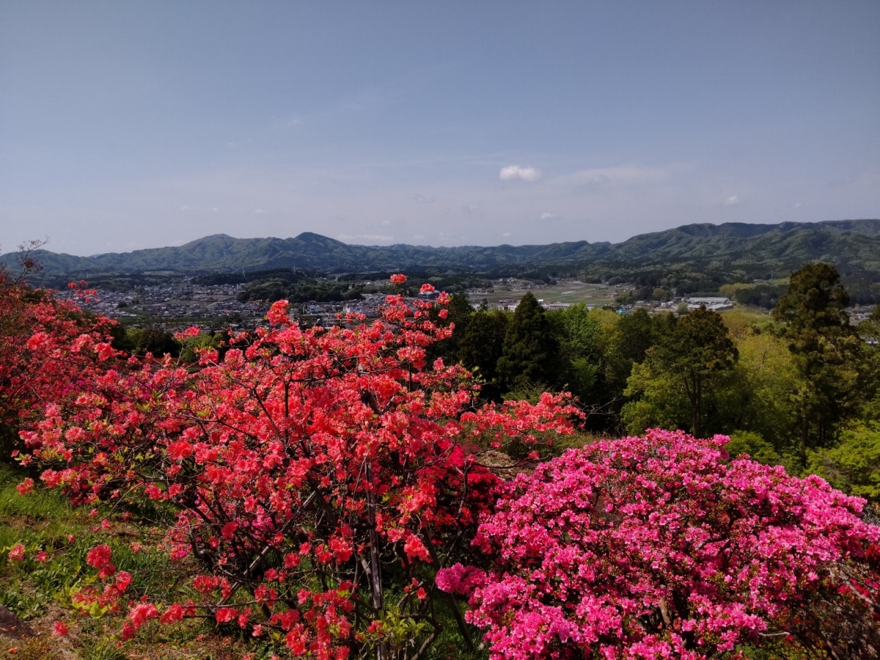 市内が一望できるつつじ公園(143m)は、4月中旬から5月中旬にかけて、様々な品種約8,500株のつつじが咲き誇り、人々の目を楽しませてくれます。また、山頂からの眺望も美しく笠間が一望できます。佐白山からつつじ公園山頂までの散歩は、ゆっくり歩いて一時間弱のハイキングコースです。