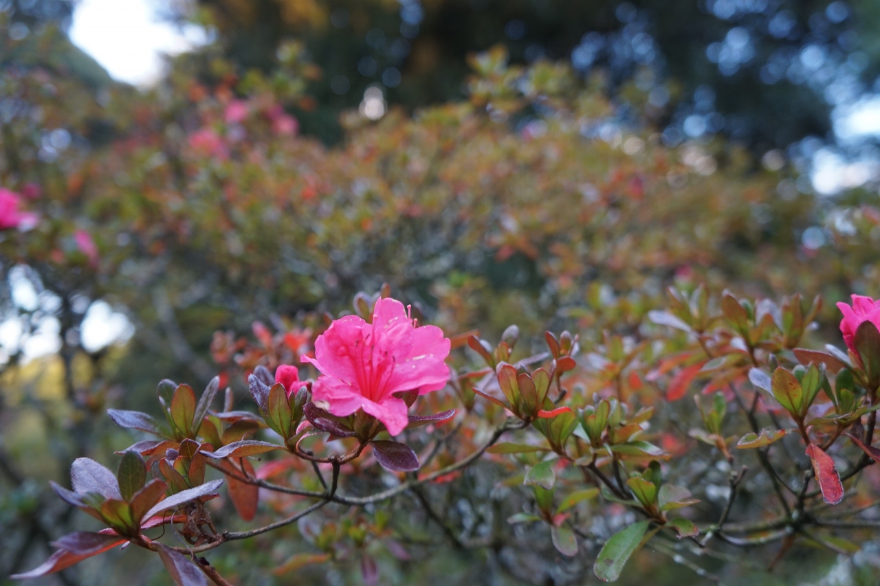 秋に少しだけ咲くつつじは、寒さに凍えているようで少しかわいそうですが、