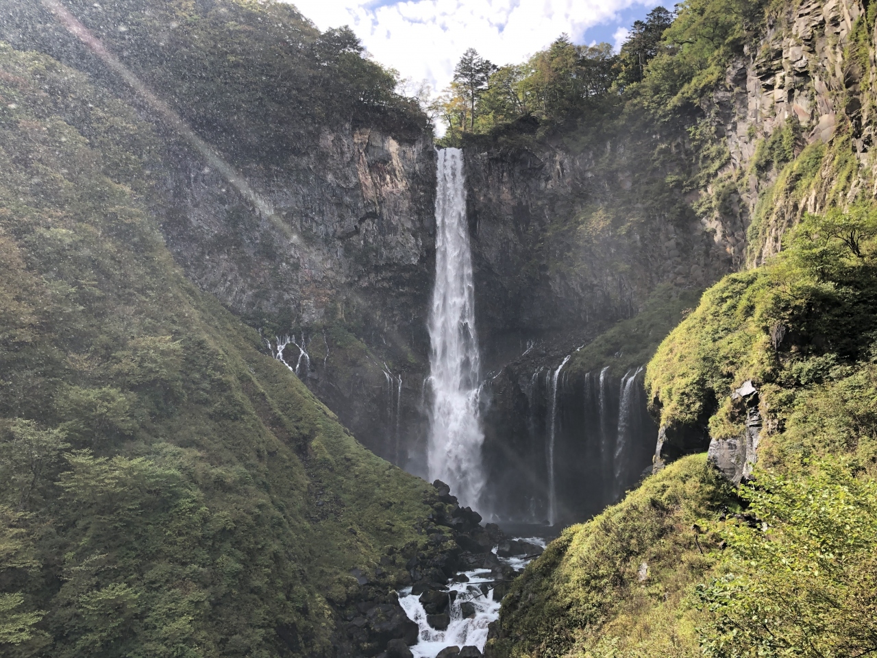 華厳の滝を見上げ迫力満点