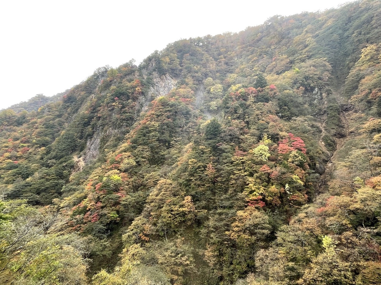 周辺の紅葉は、添付写真のように、めちゃ鮮やかで、後方の男体山とのコラボが最高でした