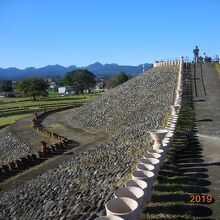二重の濠に挟まれた土手上には、復原された人物はにわや動物はにわがいっぱい。
