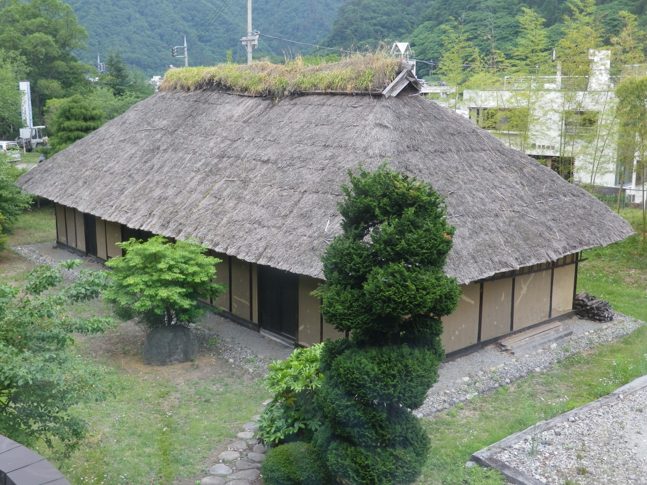18世紀後半の農家建築で、寄せ棟造り、かやぶき平屋は国指定重要文化財