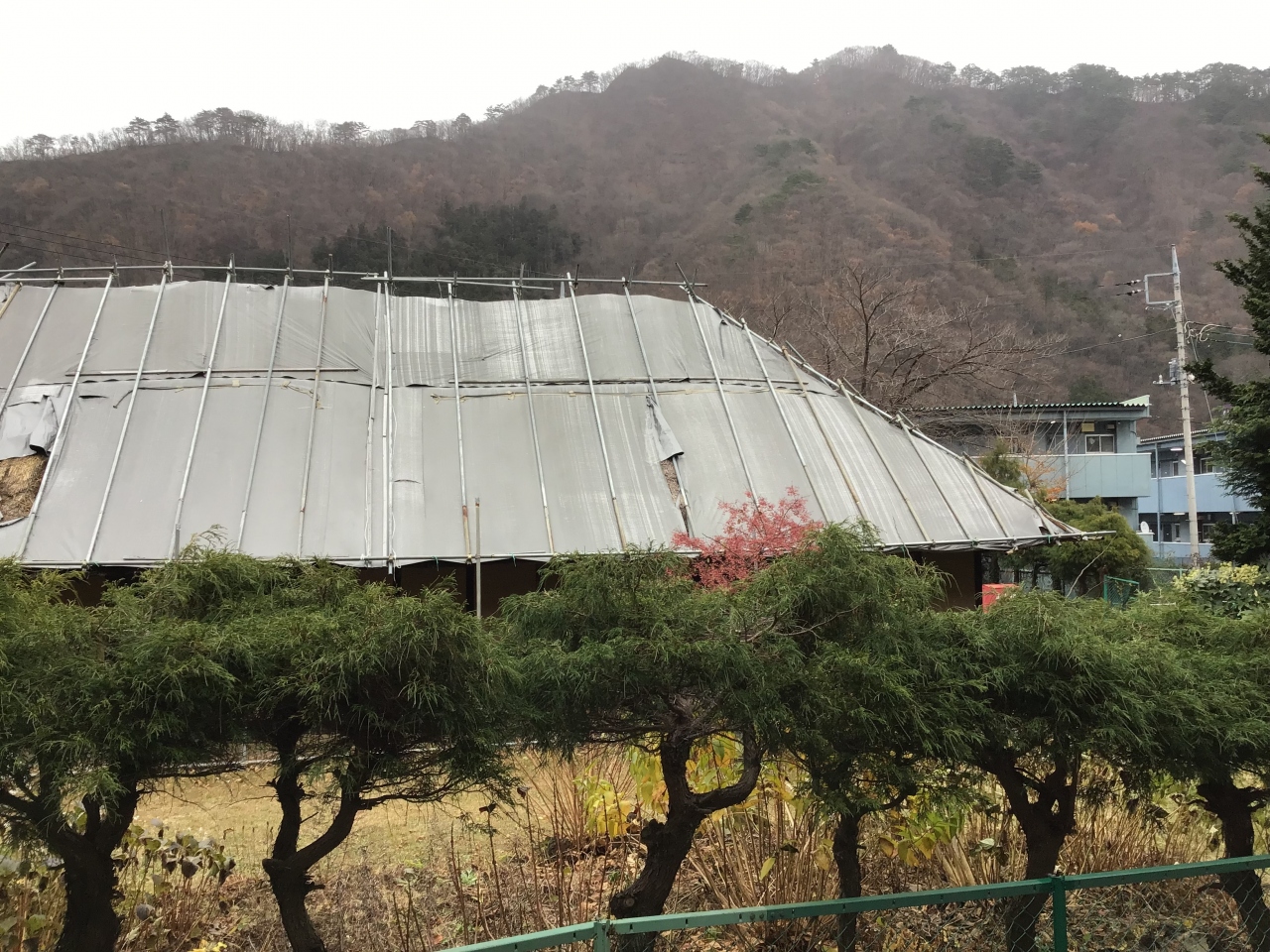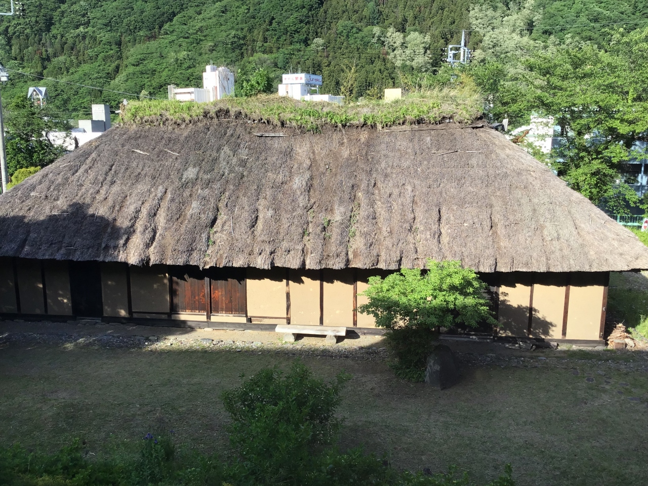 温泉街の中に移築された江戸時代の古農家の戸部家住宅は休館中