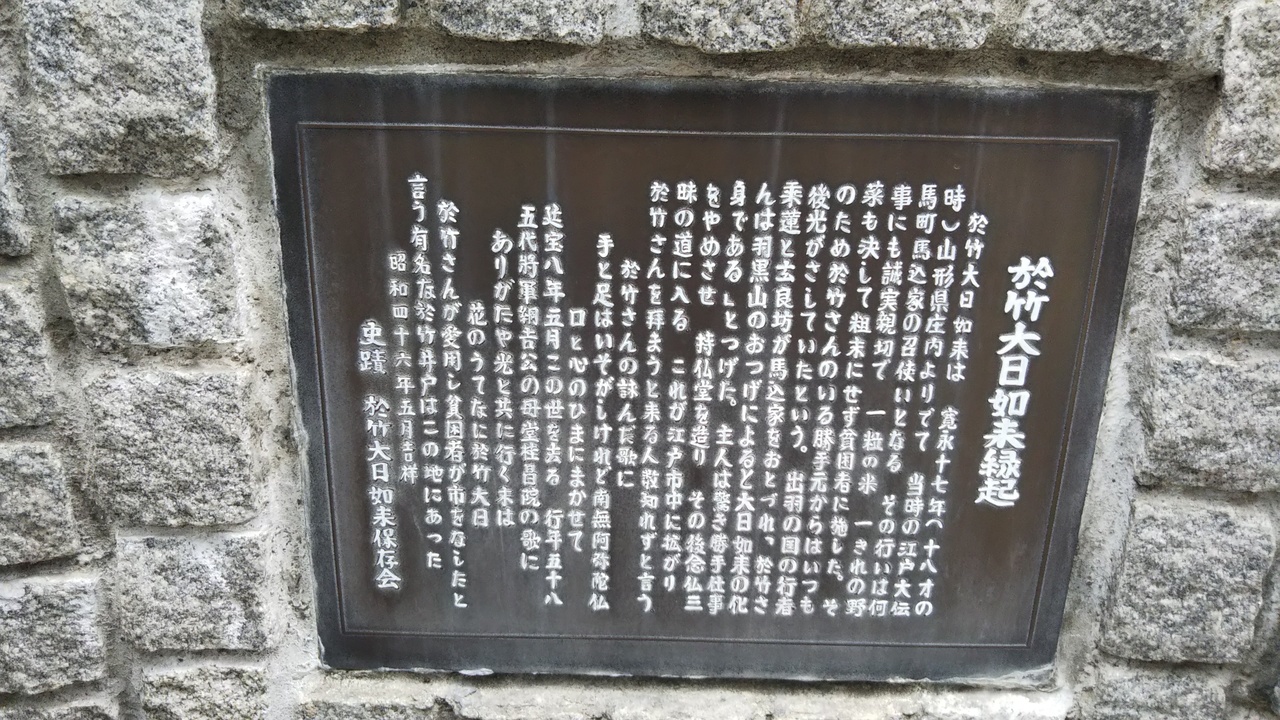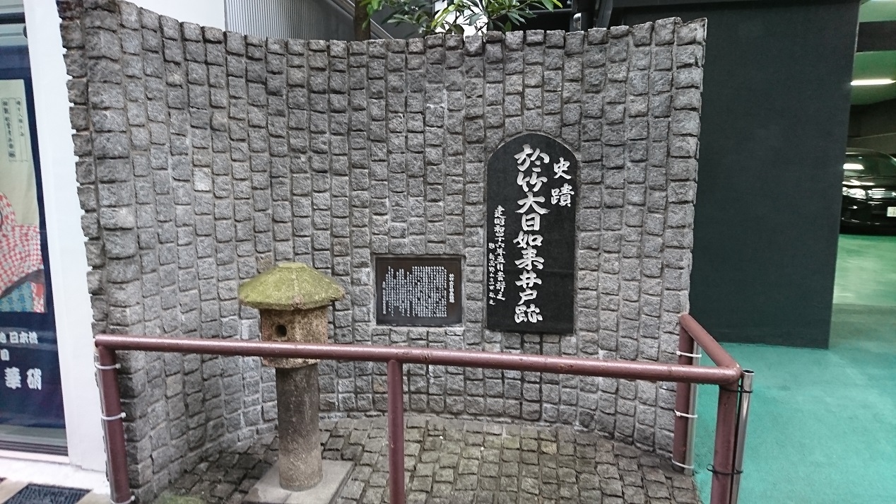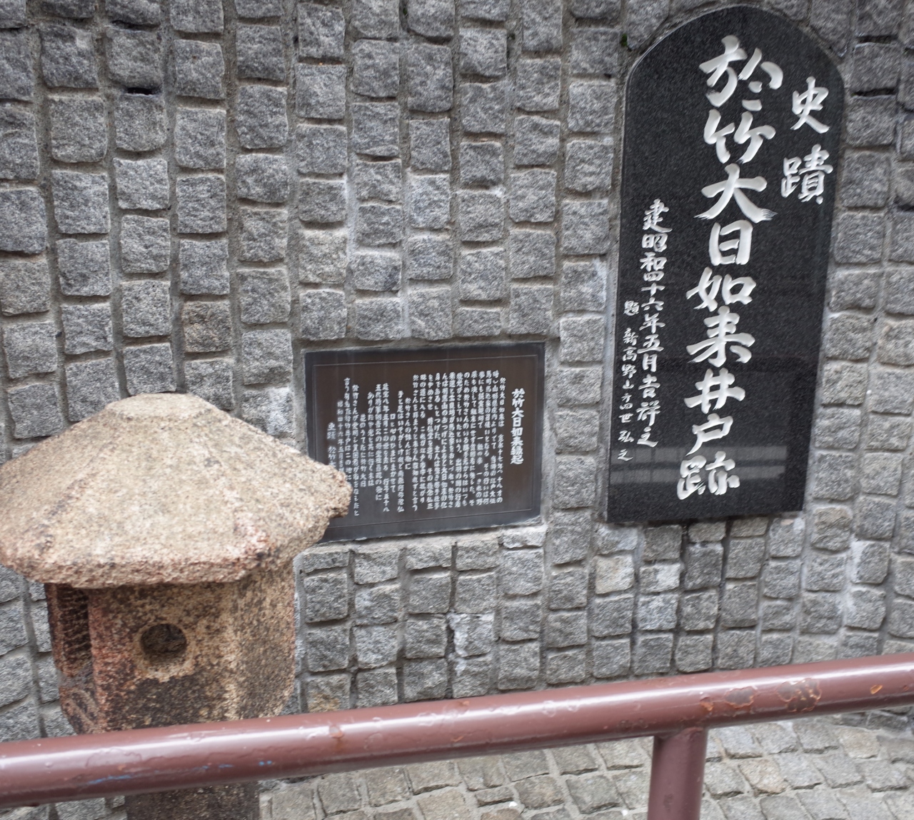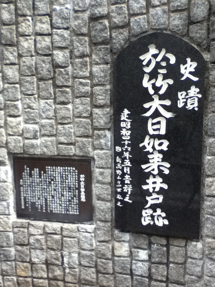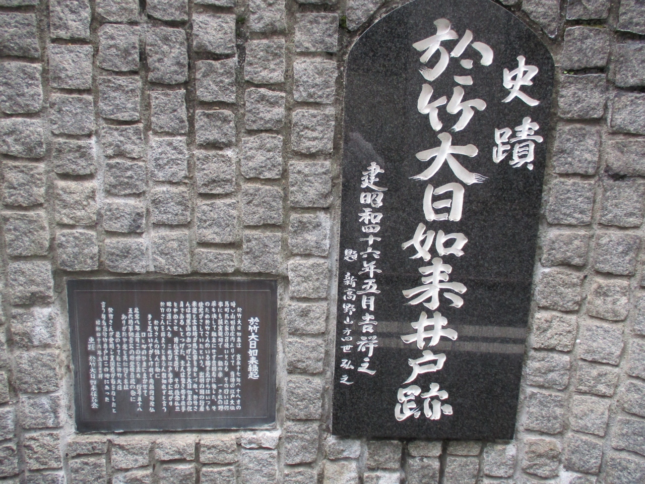 黒の御影石に白文字で【於竹大日如来井戸跡】と書かれた石碑がたっていました。