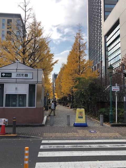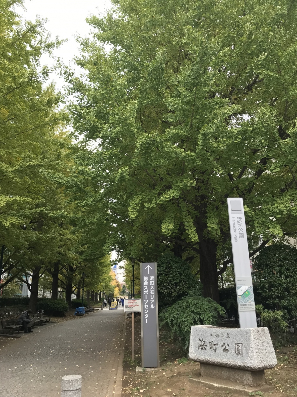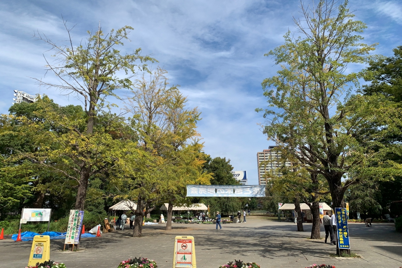 浜町公園 イチョウの黄葉がすすむ