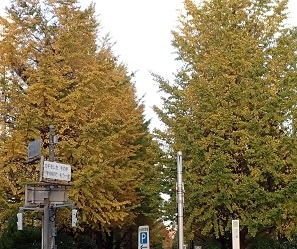 イチョウが黄色で冬を感じる光景です。