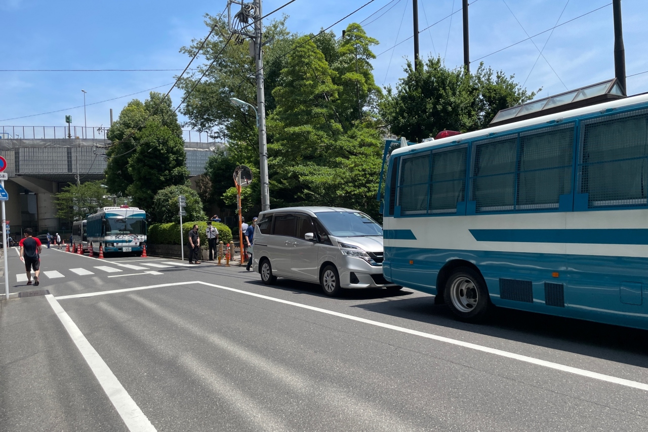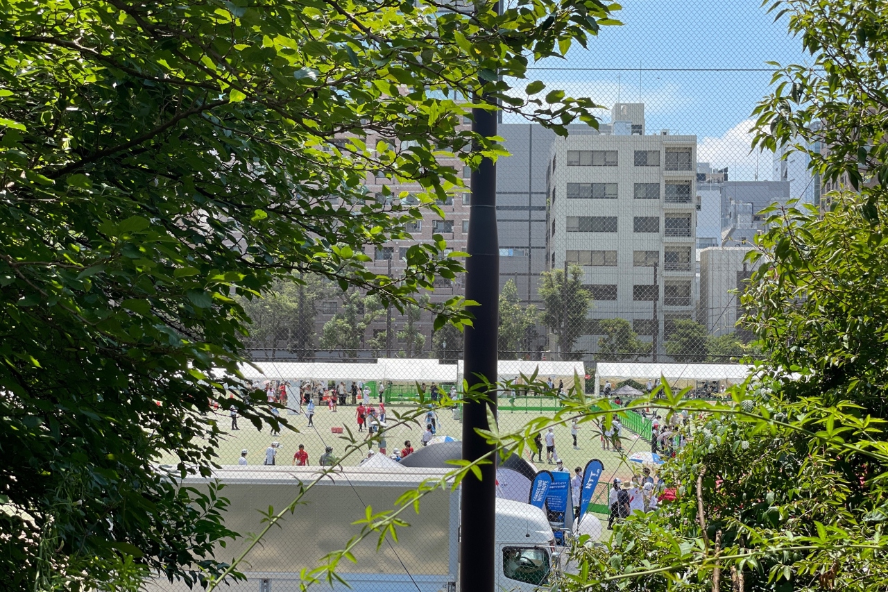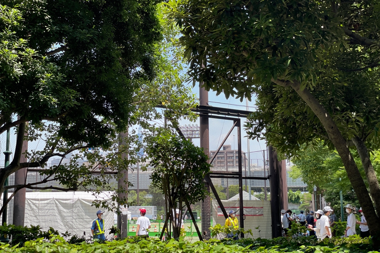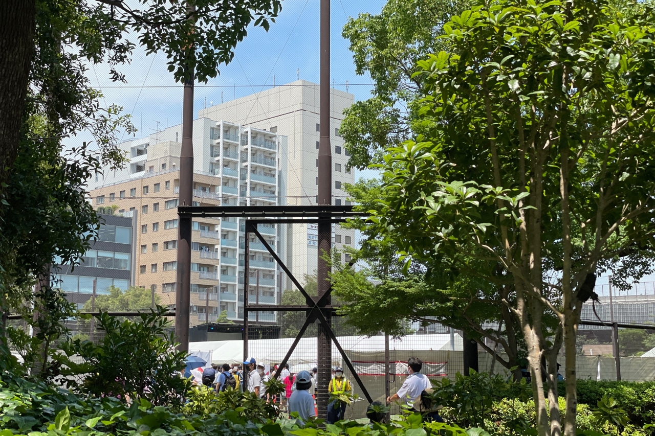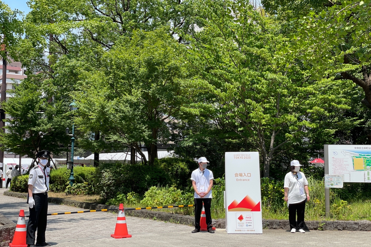 五輪の聖火リレーの為、グラウンドが閉鎖されていました。