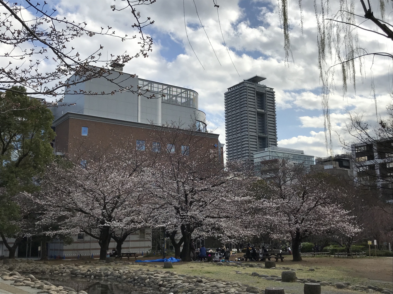 桜の浜町公園で花見