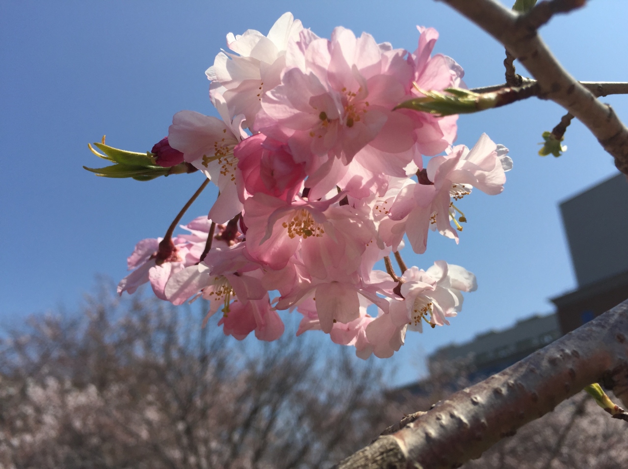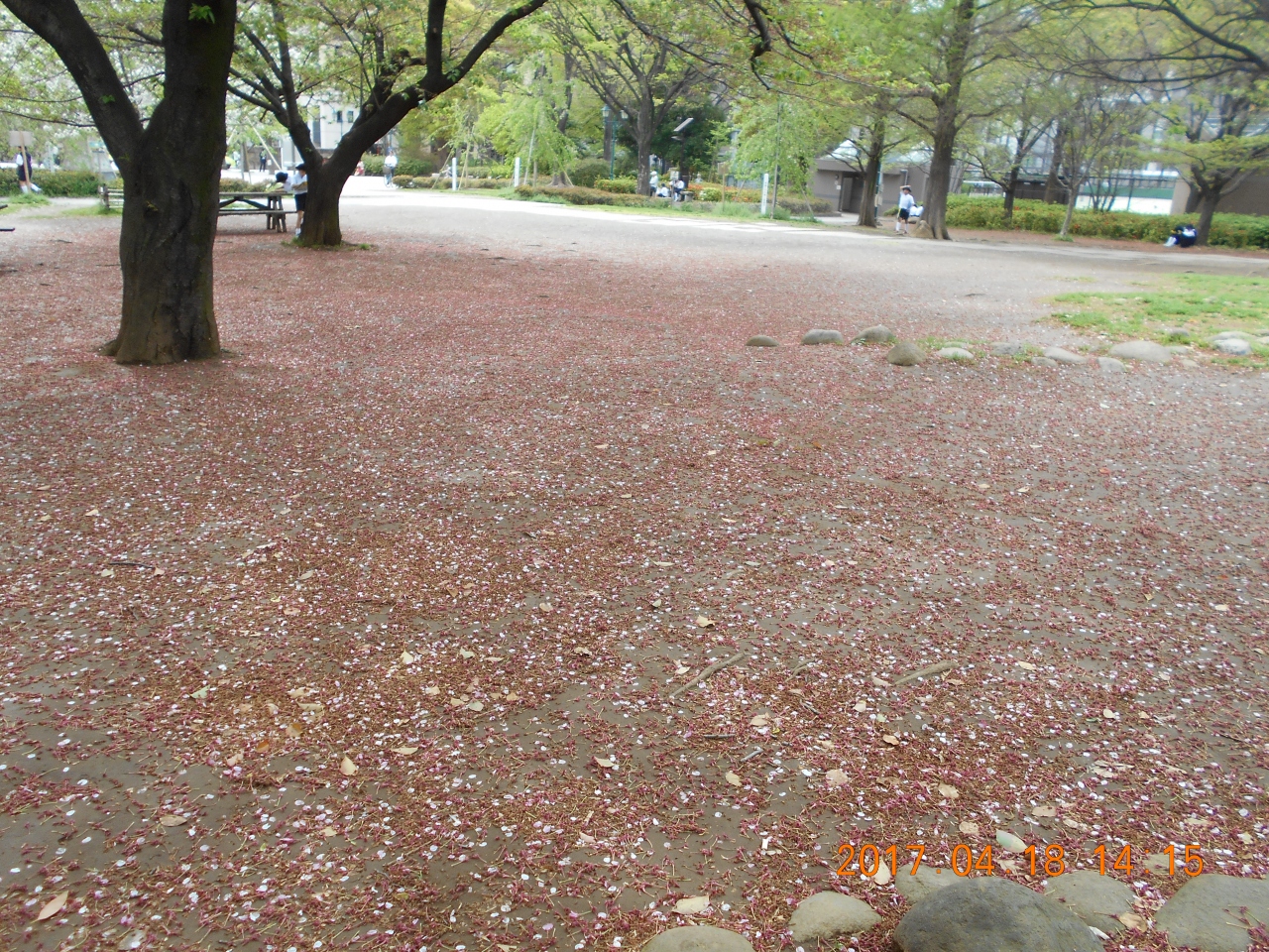 昨夜の風雨で桜はもう散ってしまい花柄がたくさん落ちていました