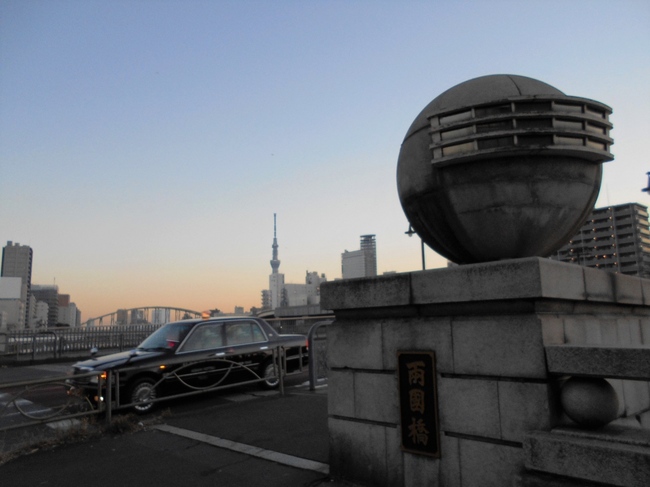 東京都墨田区(東側)と東京都中央区(西側)の間を流れる「隅田川」(旧「大川」)に架る橋が「両国橋」で、「隅田川」では「千住大橋」に次いで、2番目に架橋された橋です。貞享3年(1686年)に「利根川」東遷で「武蔵国と下総国境」が変更されるまでは、現在の墨田区側が「下総国」という地名で、二つの国をつなぐ橋だったので「両国橋」という名前が生まれました。当時の江戸幕府は、防御的な意味合いで「隅田川」の橋は「千住大橋」を除いて架橋が許されませんでしたが、明暦3年(1657年)の明暦の大火で、橋がないことで多くの人が逃げ場を失い多数の死者が出たということから両国橋が架けられたそうです。当初は「大橋」が正式名で、「両国橋」は俗称でしたが、元禄6年(1693年)に、「隅田川」の3番目の橋として「新大橋」が架橋されたため、「両国橋」が正式名になったそうです。現在の橋は、昭和5年(1930年)に関東大震災からの帝都復興で東京市が架橋した橋です。長支間の鈑桁橋で架設当時は、言問橋や大阪市の天満橋とともに「三大ゲルバー橋」の一つと言われ威容を誇りました。構造形式は、3径間ゲルバー式鋼鈑桁橋で「橋長」は164.5m、「幅員」は24.0mです。