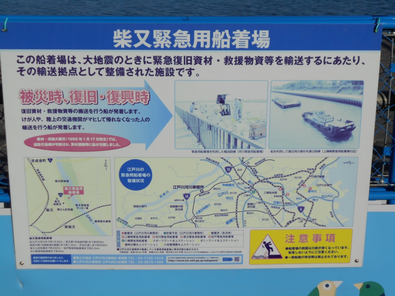 スーパー堤防に作られた柴又公園と江戸川河川敷は、水と緑の豊かな憩いの場となっていいる。歌謡曲などで有名な「矢切の渡し」、堤防には歩行者や自転車が通ることができる道が続いており、水元公園まで行くこともできる。