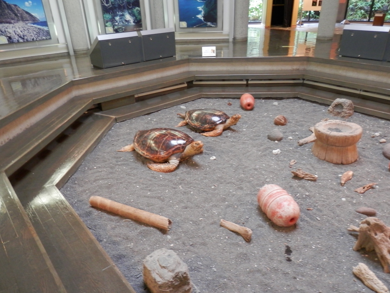 ビジターセンターに寄ると、公園内のことや島の砂浜を再現したスペース?や黄八丈などを売るコーナーもありました。