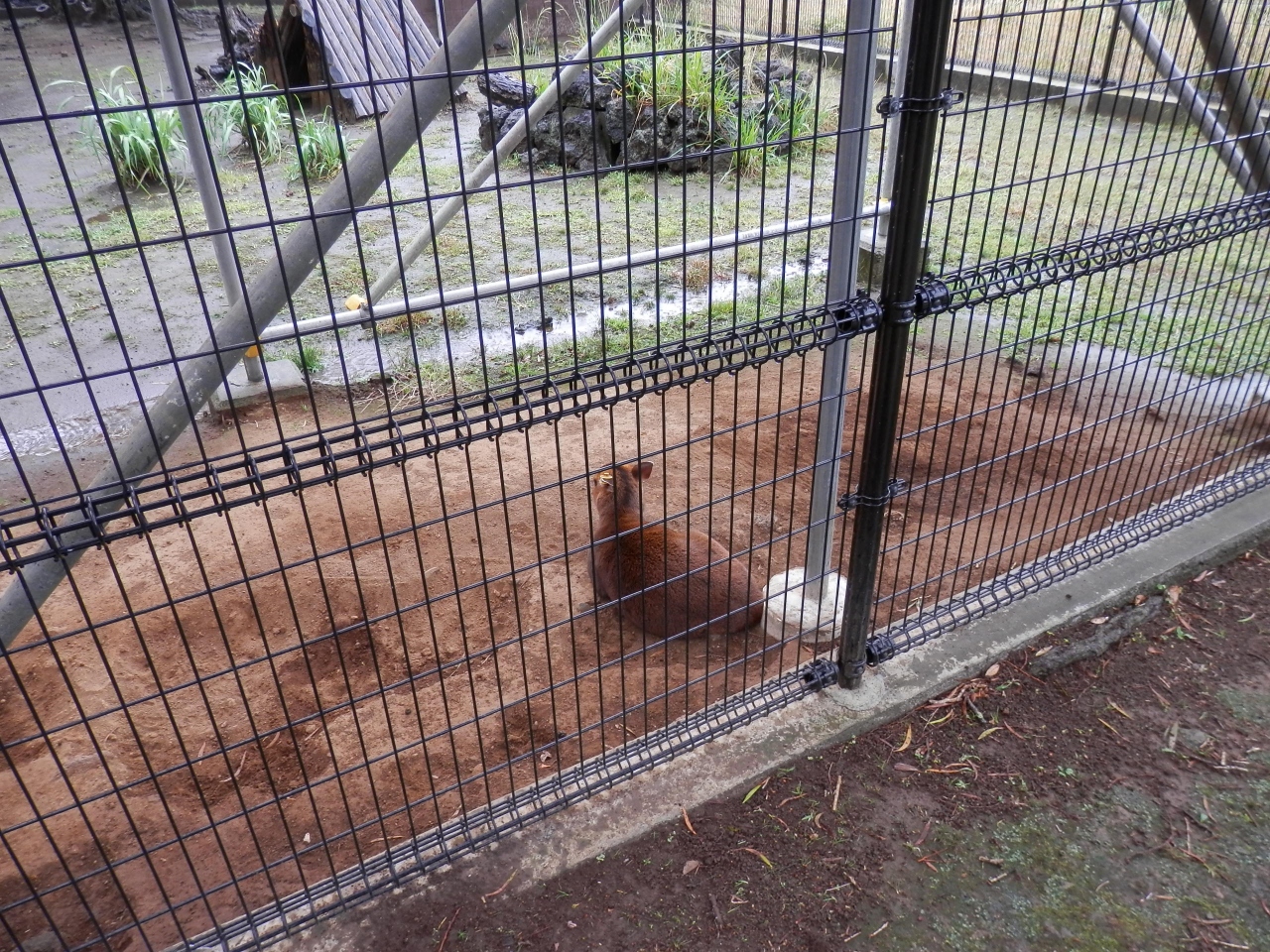 雨の中キョンの飼育コーナーへ向かうと…ア、アレ??いない。