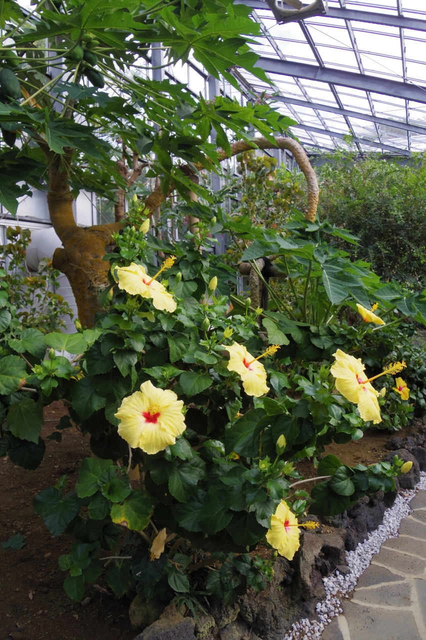 途中寒くて温室に避難。中には南国の花やコーヒーの木、パパイヤなどなど見たことがないものがたくさん咲いていました。