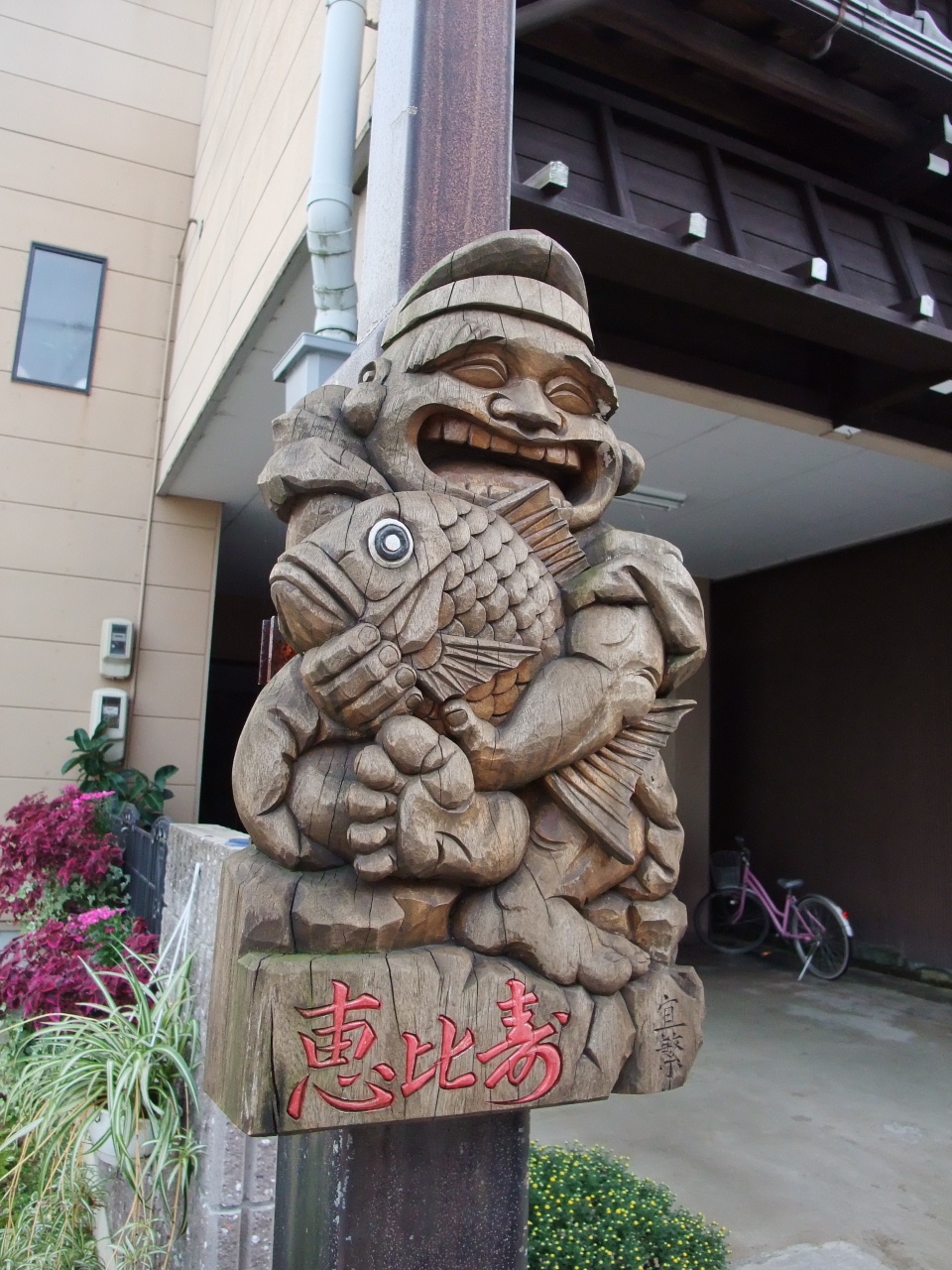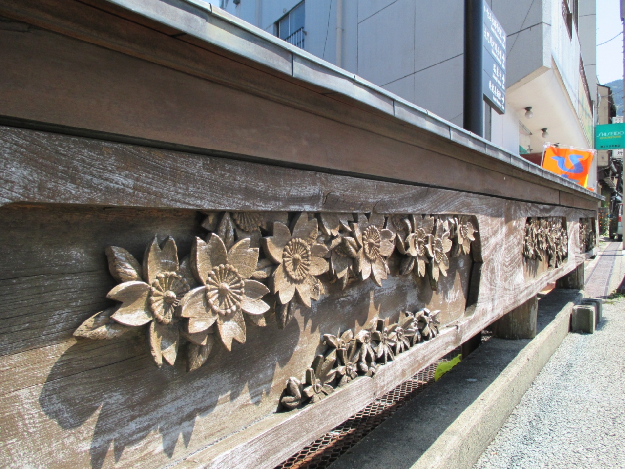 木彫りの町とのことで、それはもう、そこかしこに素敵な木彫り。電話ボックスに橋の欄干、なんだかあちこちに七福神まで、細やかな彫刻であふれていました。