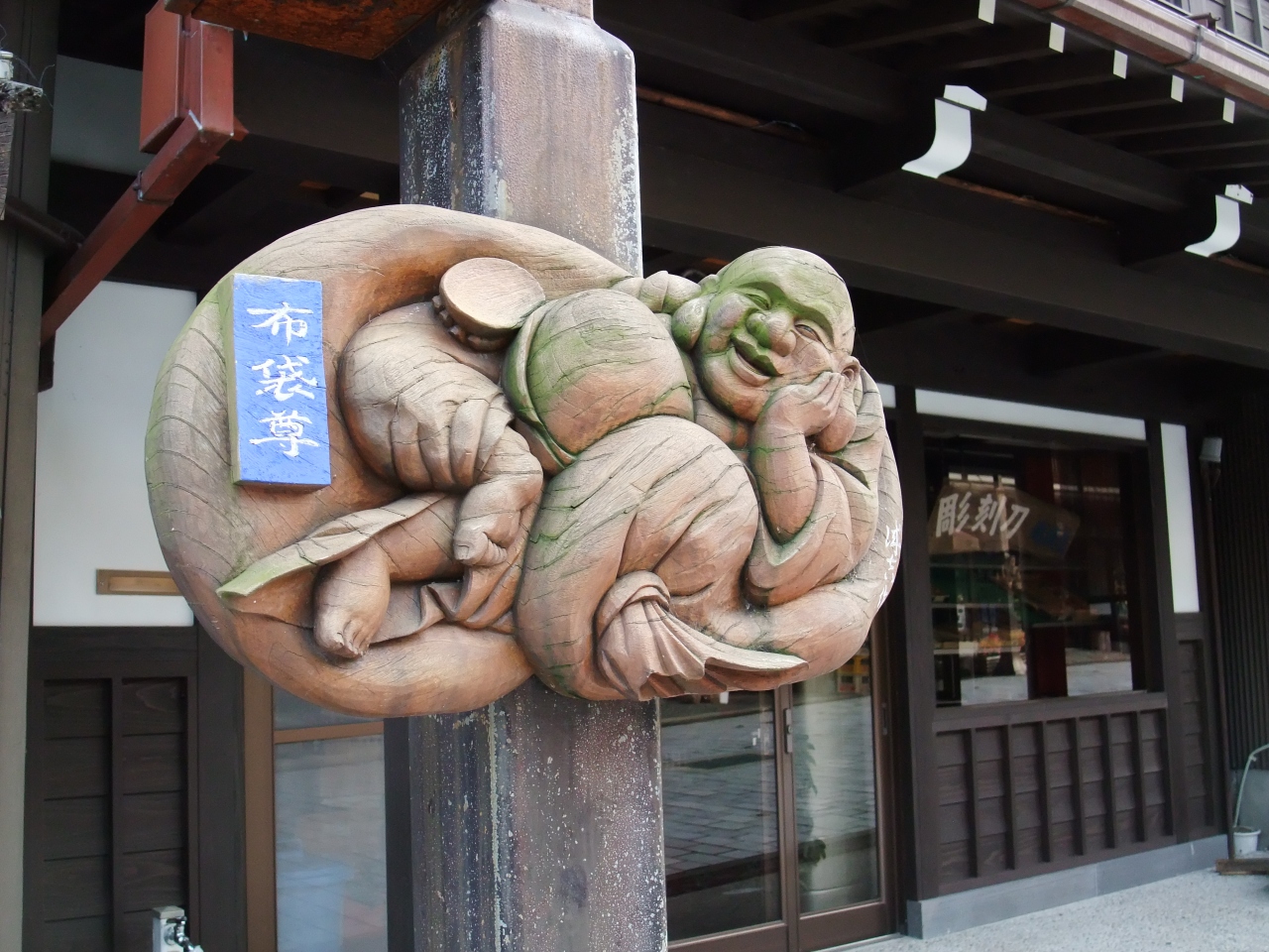 町の至るところで木彫りの神々が暖かく迎えてくれました。瑞泉寺の門前町八日町通りは、「神が微笑む道」なのだそうです。
