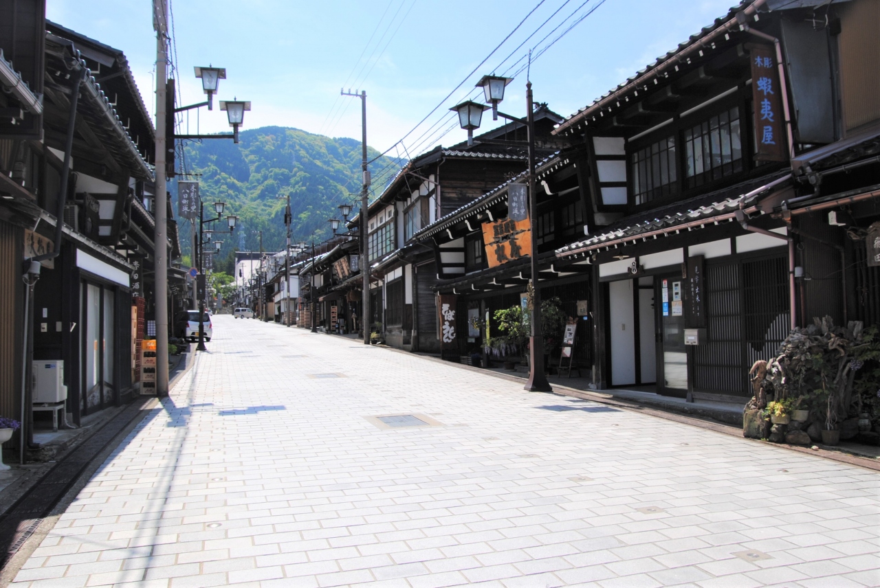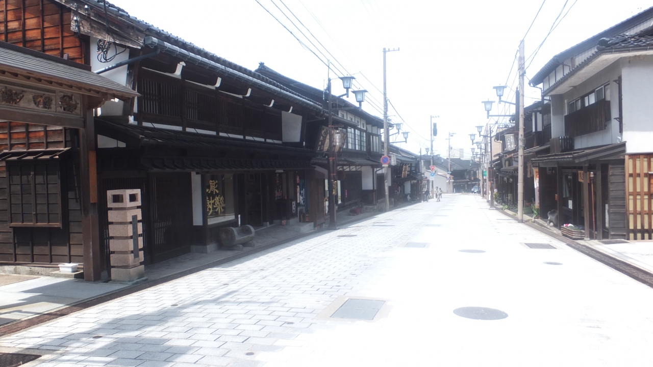 町屋づくりの家並みが並ぶ落ち着いた通りです
