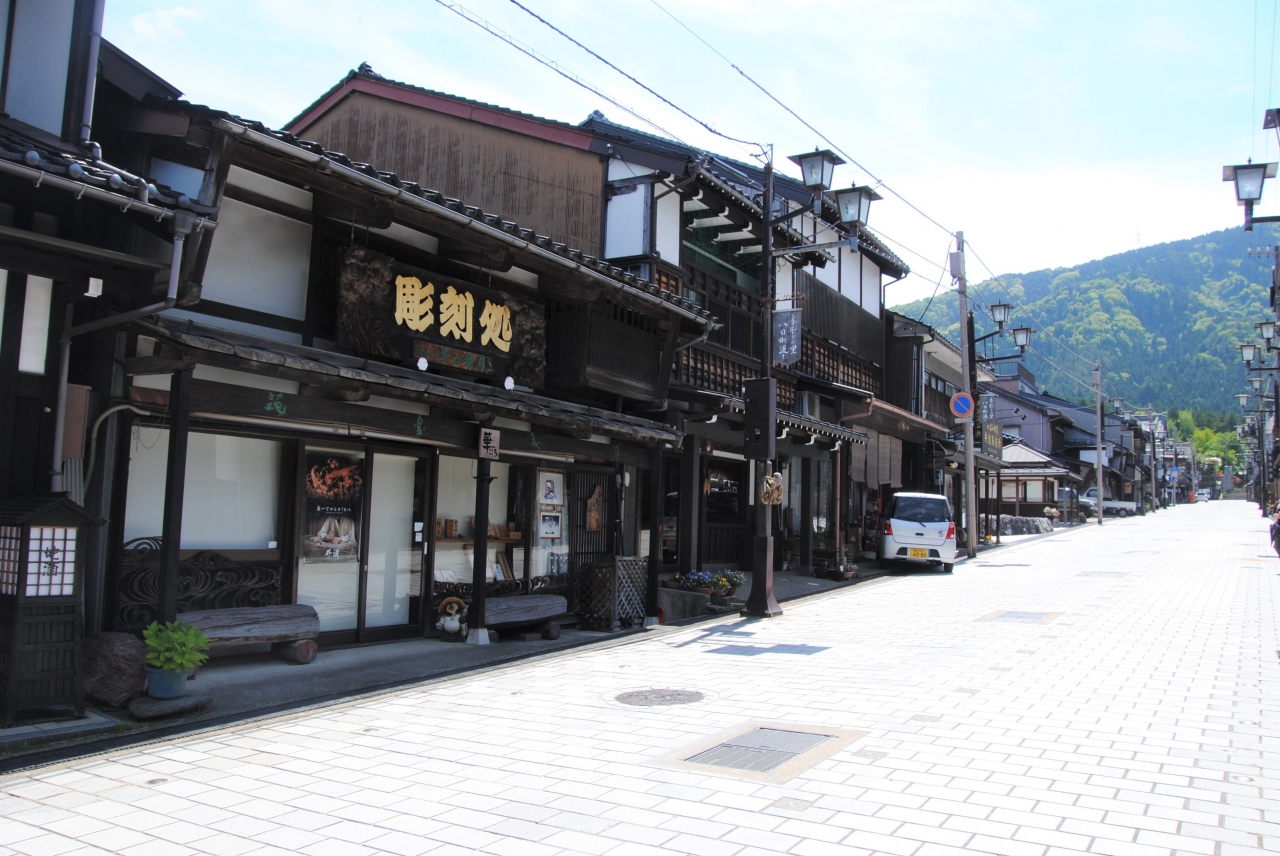木彫りの店が数多く並んだ落ち着いた街並みです