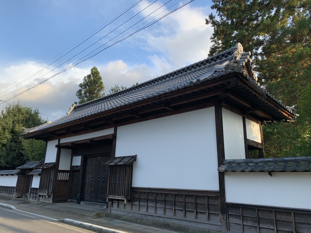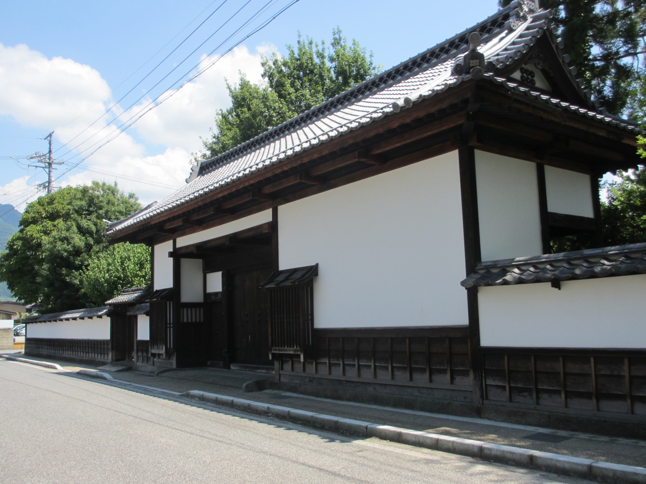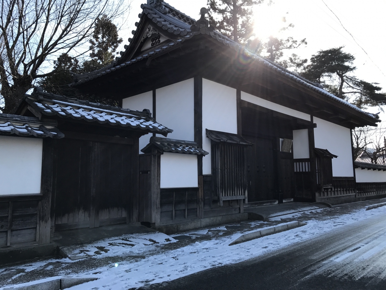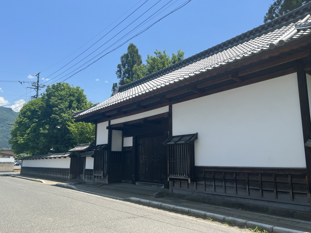 漆喰壁が眩しい門(矢沢家の表門)