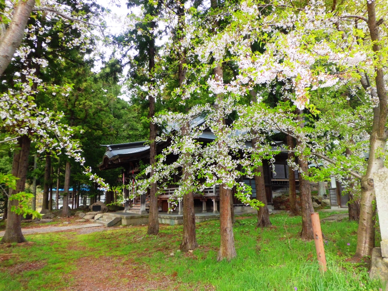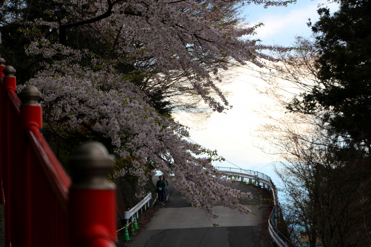 GWに訪れた時、天川神社の桜は満開を過ぎ、ピンクの花と若葉の緑色のコラボが楽しめました。