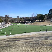 小山をそのまま芝生の広場にしたような