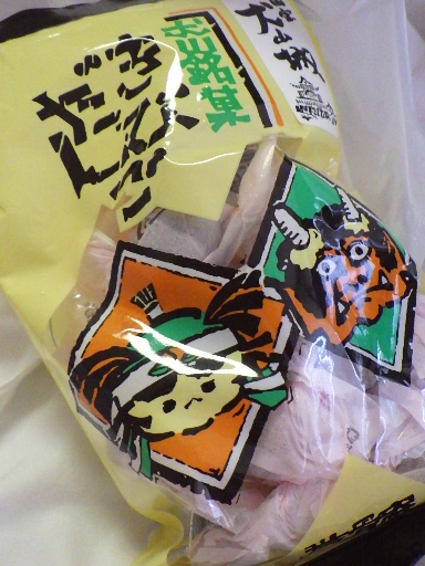 内容的には、黄粉を練り固めた感じのお菓子で、口の中に含むと、さっと粉状に溶けていく感じ。