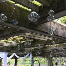 きらきら光るものがたくさんぶら下がっていてよく見たら空き缶で作った風車でした。