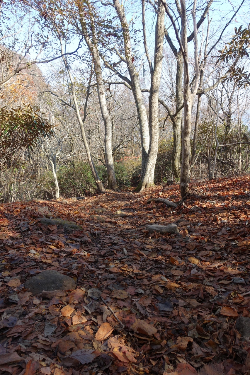 5分ほど休憩し、南峰経由で下山開始です。ところが、下りも急坂です。南峰はロッククライミングって感じですね。