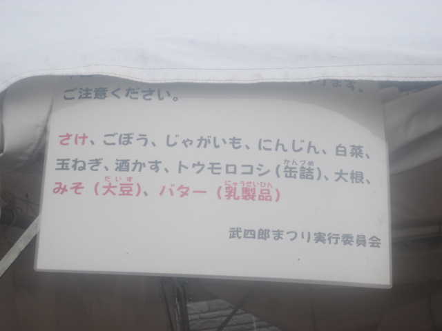 当日は色々なお店も出店しますが、一番人気は1杯100円でふるまわれる、野菜や鮭が沢山入った武四郎鍋で、こちらは限定メニューとなりますので、時間になったら早めに並ばれることをお勧めします。
