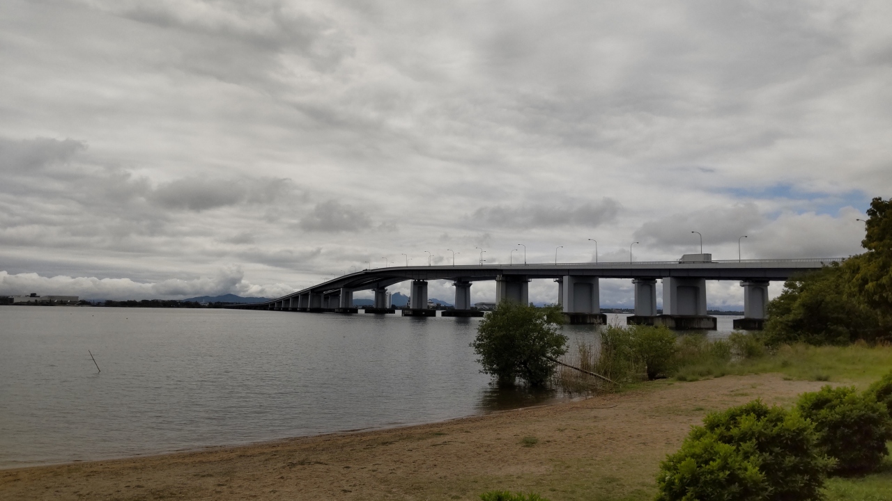 琵琶湖一周で堅田から守山へ琵琶湖大橋を渡りました。