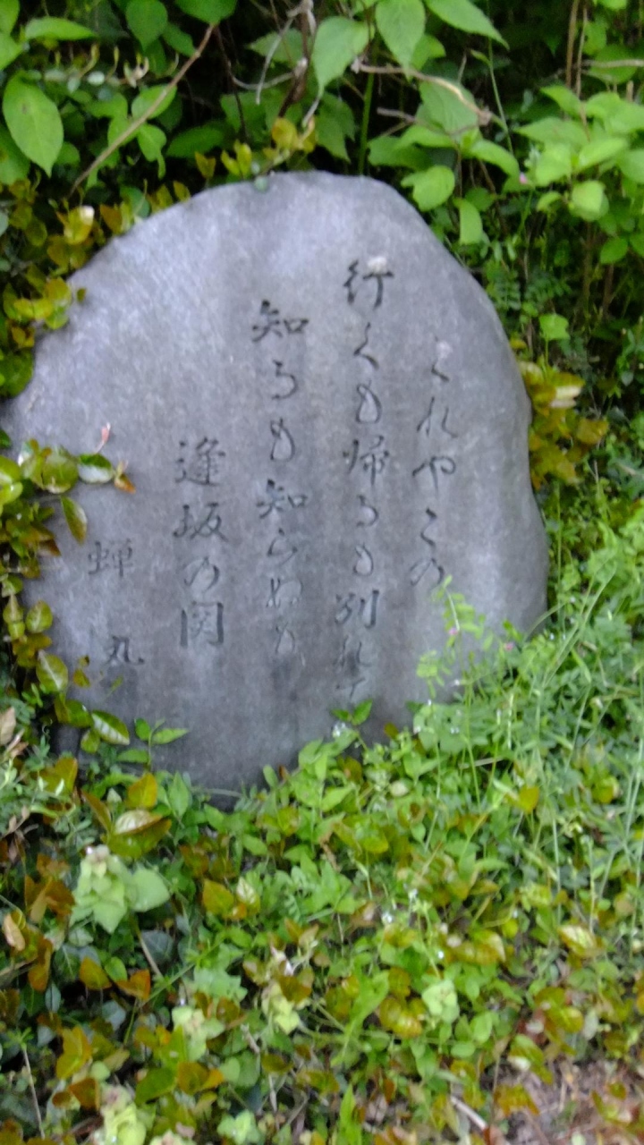 国道1号線から少し右手に入ったところに碑が建立されている。平安時代中期に不破関・鈴鹿関と共に〝三関〟のひとつとして交通の要... 続きを読む所として名を馳せていた。古より貴族や武将、文人墨客が通過しており、中でも盲であり琵琶の名手であった蝉丸は、この地に庵を結んだとされており百人一首に取り上げられている〝これやこのゆくもかえるもわかれては知るも知らぬも逢坂の関〟の一首は、この地を通り過ぎる人の流れを詠んだものとされている。
