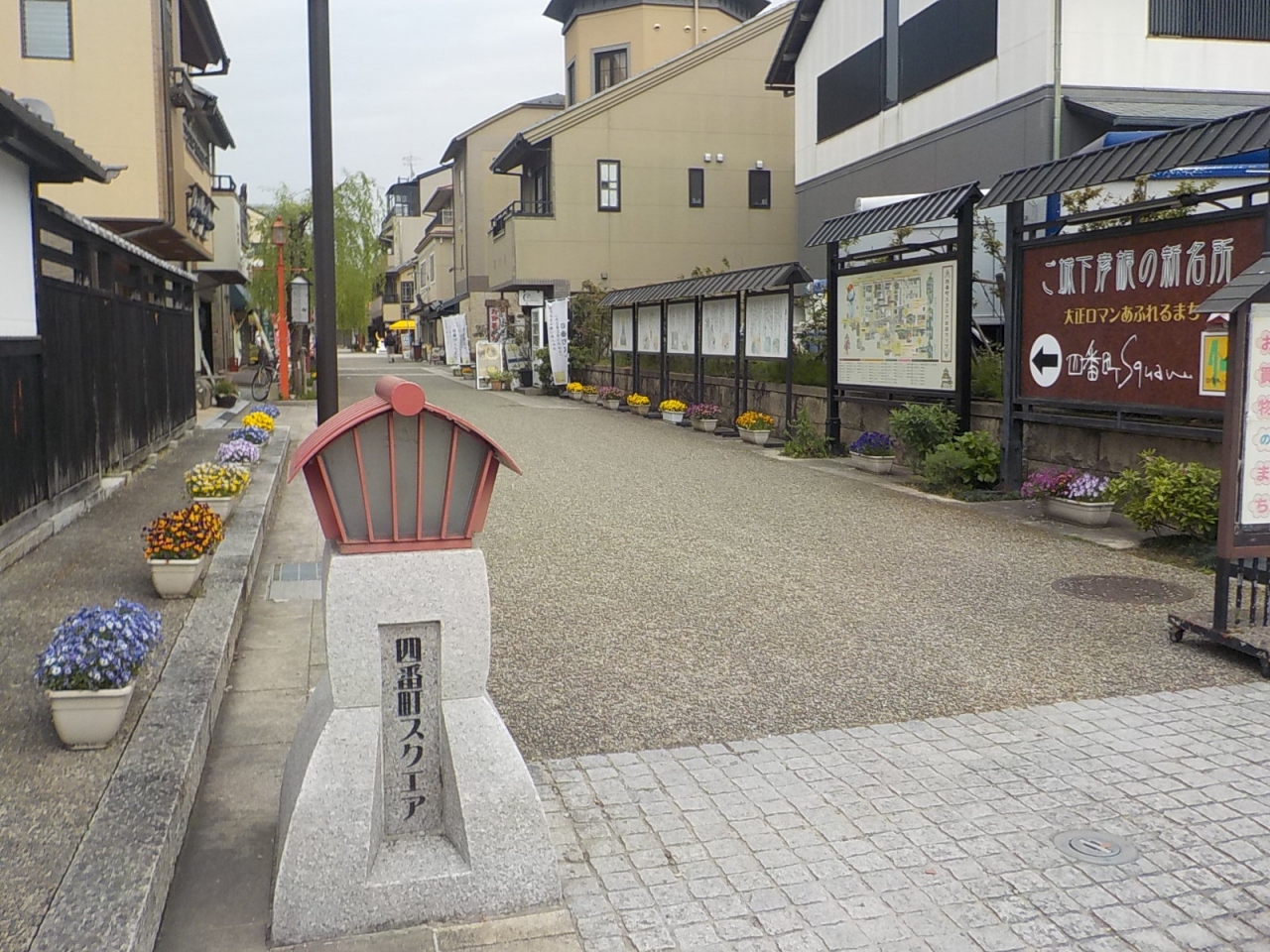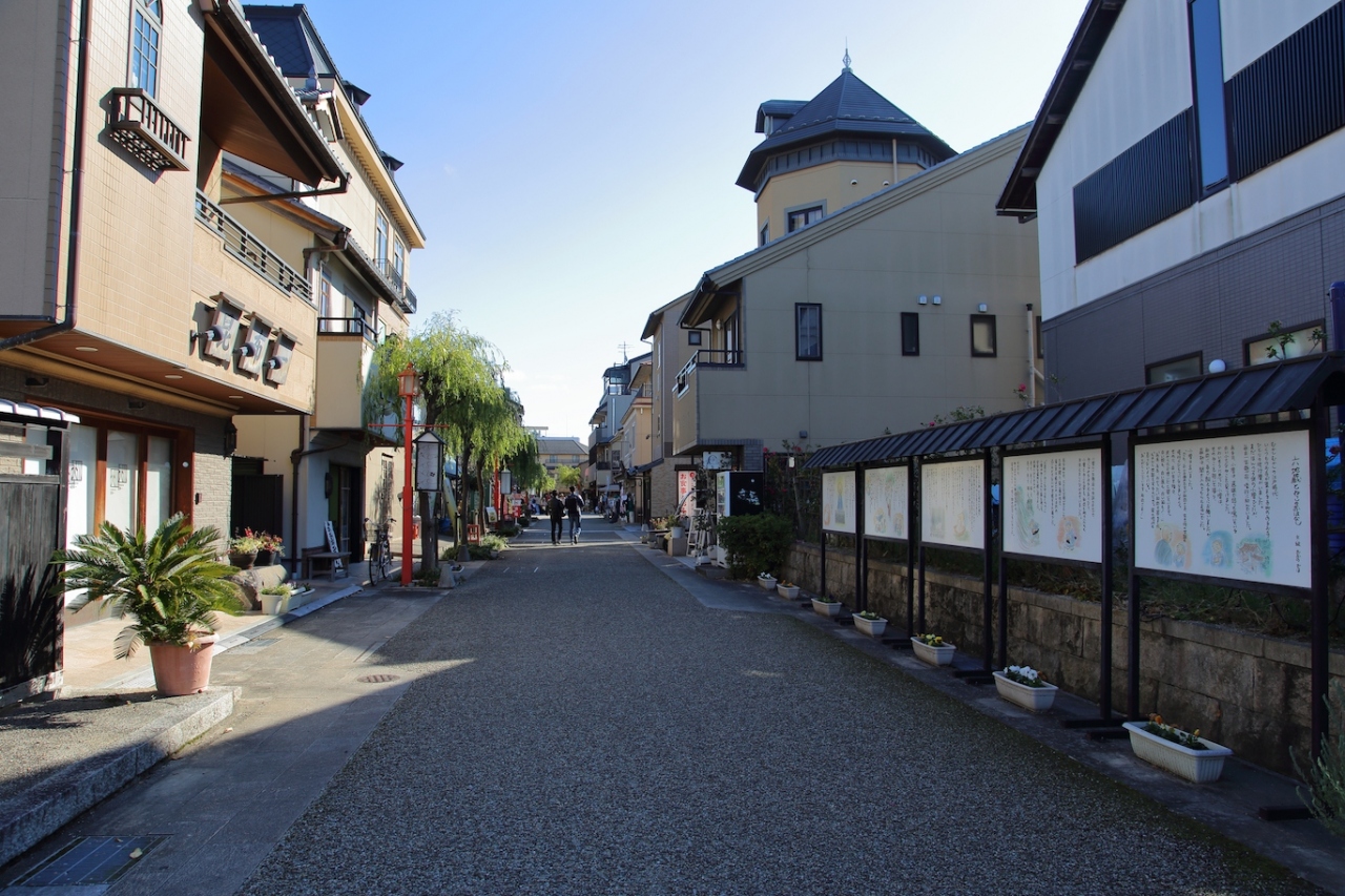 夢京橋キャッスルロードから繋がっているショッピングエリアです。夢京橋キャッスルロードは日本の伝統的な街並みを再現しています... 続きを読むが、こちらは大正モダンをモチーフにして建物に装飾が施されています。四番町ダイニングを中心に飲食店や土産物店が並んでいますが、元々は商店街だったようで、地元の方向けのお手軽な惣菜なども売られていて、気取らずに歩けます。観光案内所もこのエリアにあります。