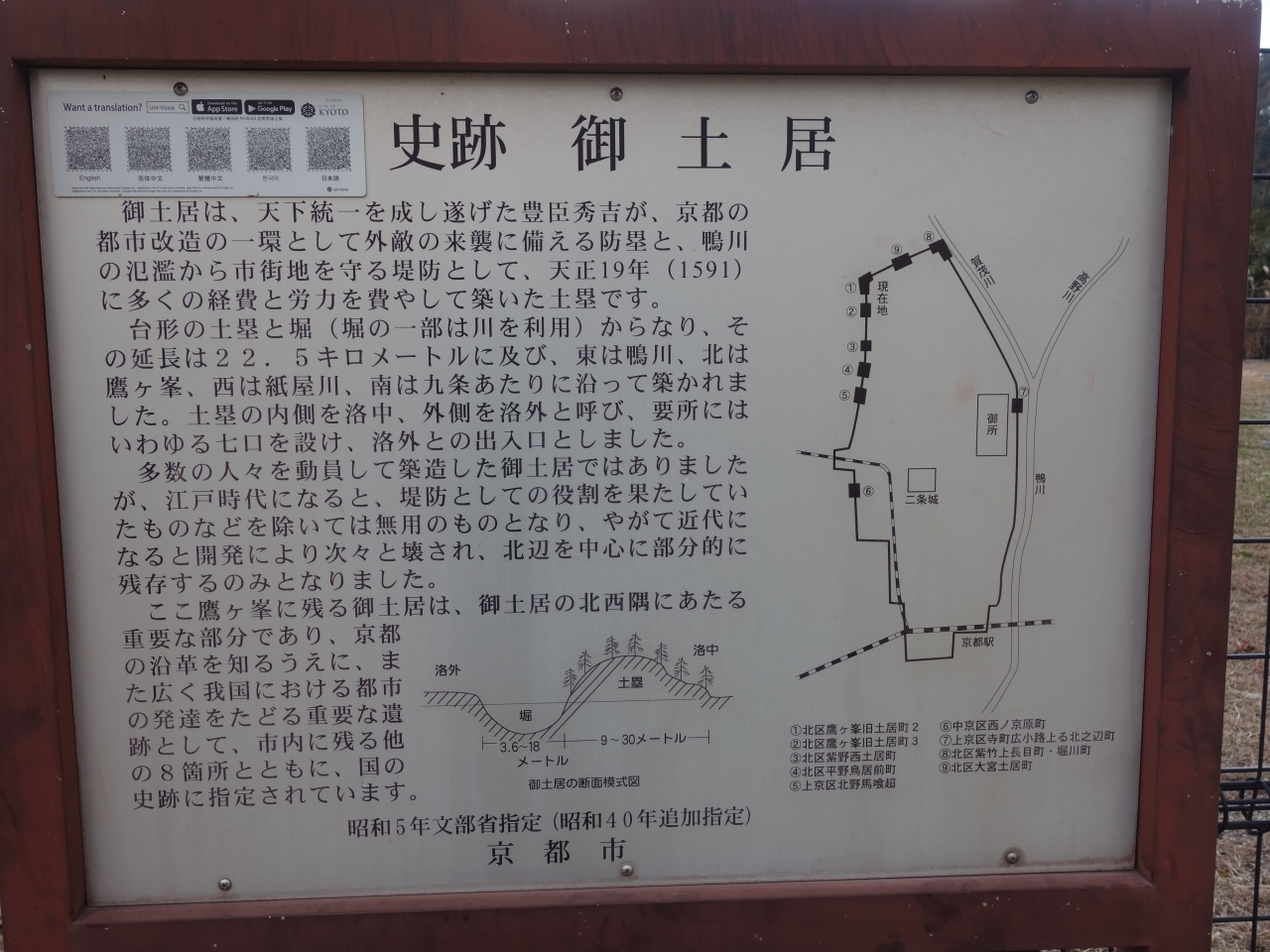 秀吉が築いた京都を取り囲む土居。何ヶ所かが残っている。必見です。