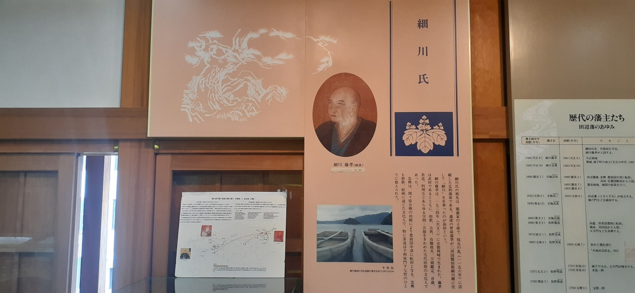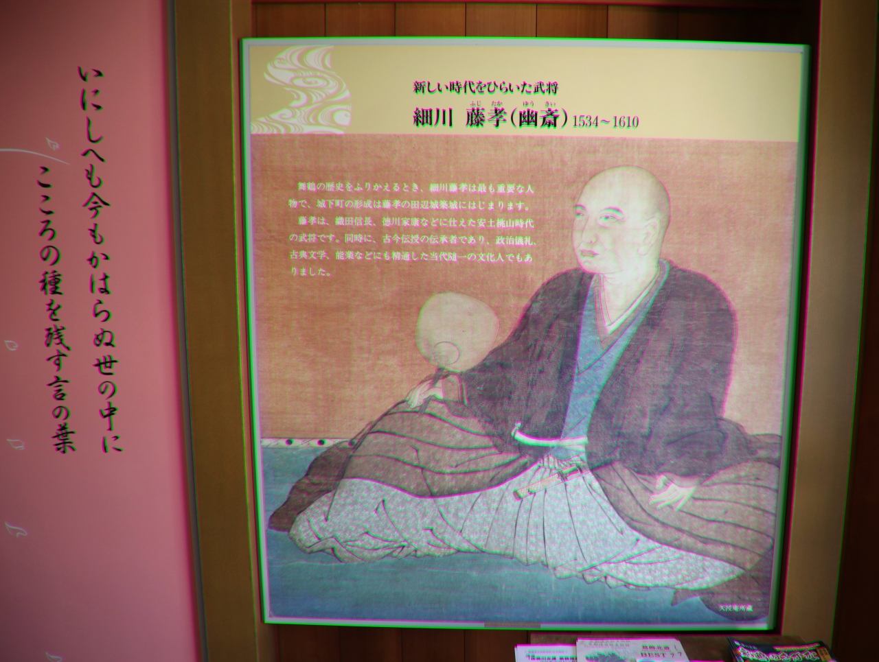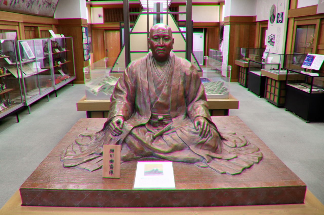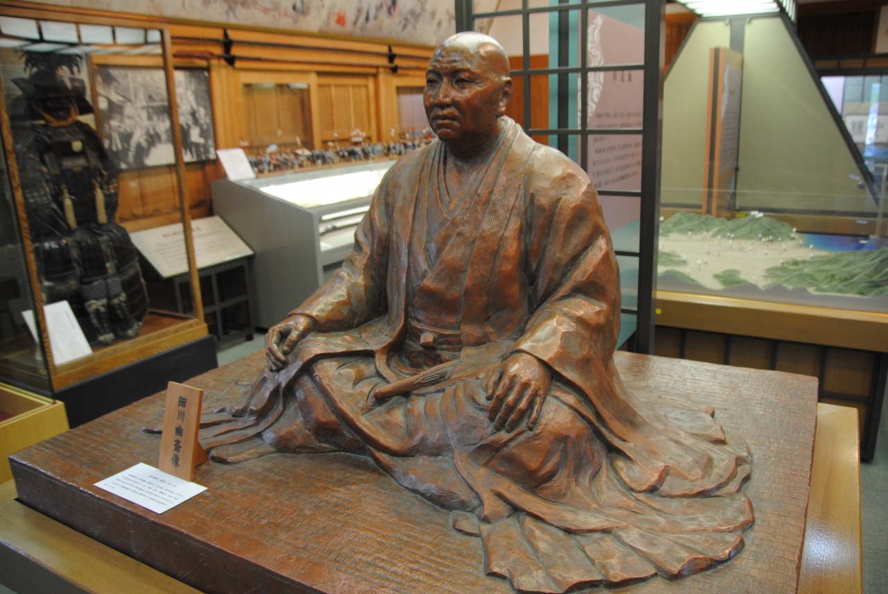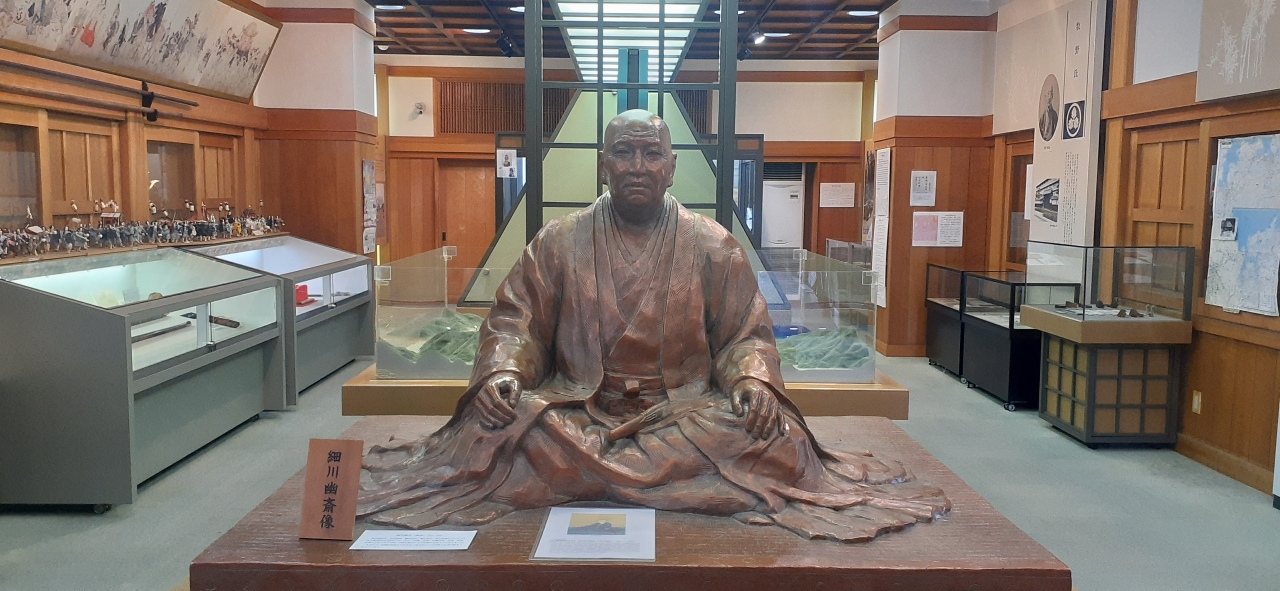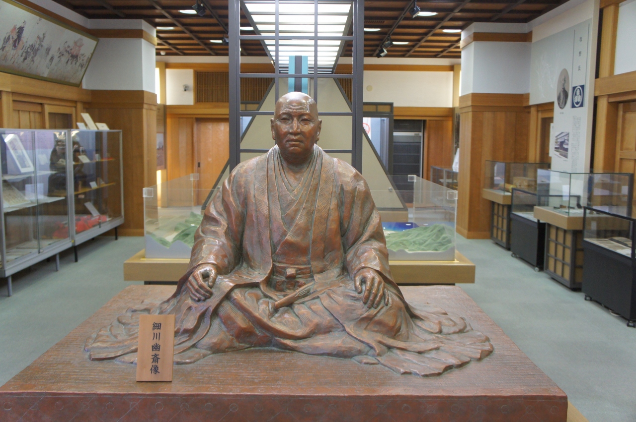 入ってすぐ、細川藤孝(幽斎)の像がありました。